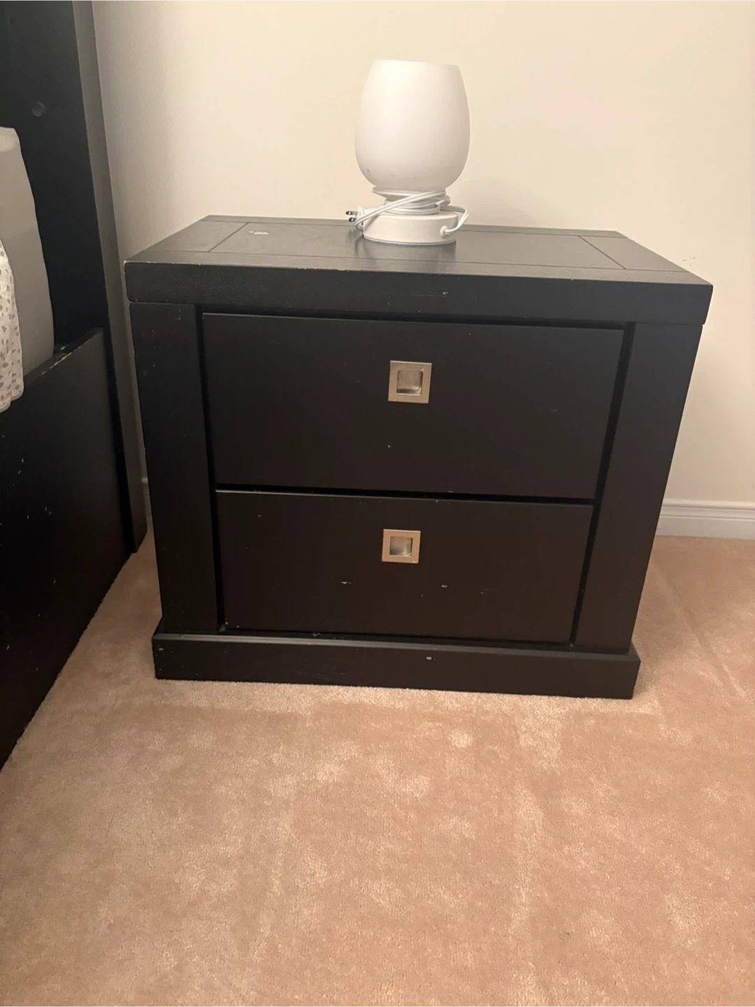 Two matching black and tables.