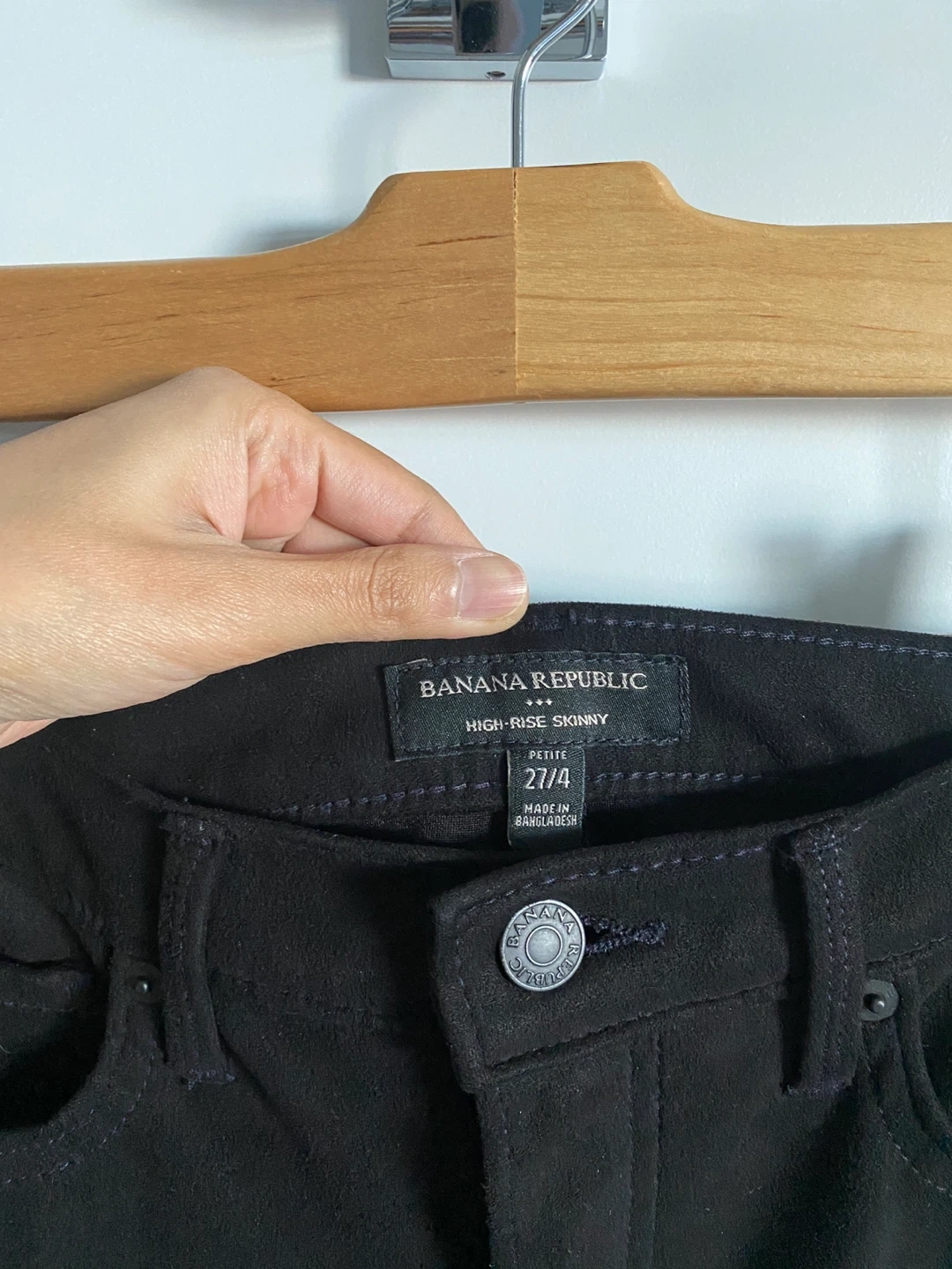 240Selling a pair of Banana Republic High-Rise Soft Stretch Vegan Suede pants in a petite size 27/4. They are a sleek black colour and in excellent condition. Very luxurious, comfortable and soft to wear. Perfect for dressing up or down! Has two pockets in front, two in back. Can be worn for office or casual look. Worn only 4-5 times. Out of stock everywhere online, got them for CAD $90 after taxes. ❤️ Check out my other listings for great deals!