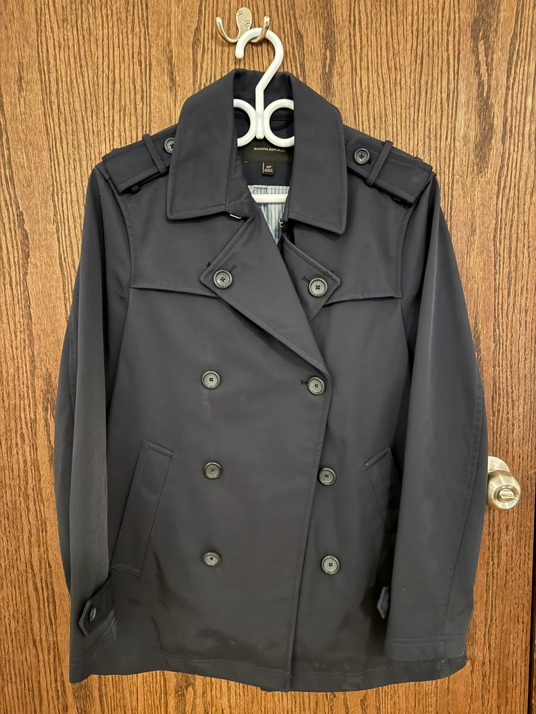 10Selling a Banana Republic trench coat in great condition! It's a stylish and versatile piece, perfect for layering. The coat features a classic double-breasted design and is made from durable materials. A great addition to any wardrobe!