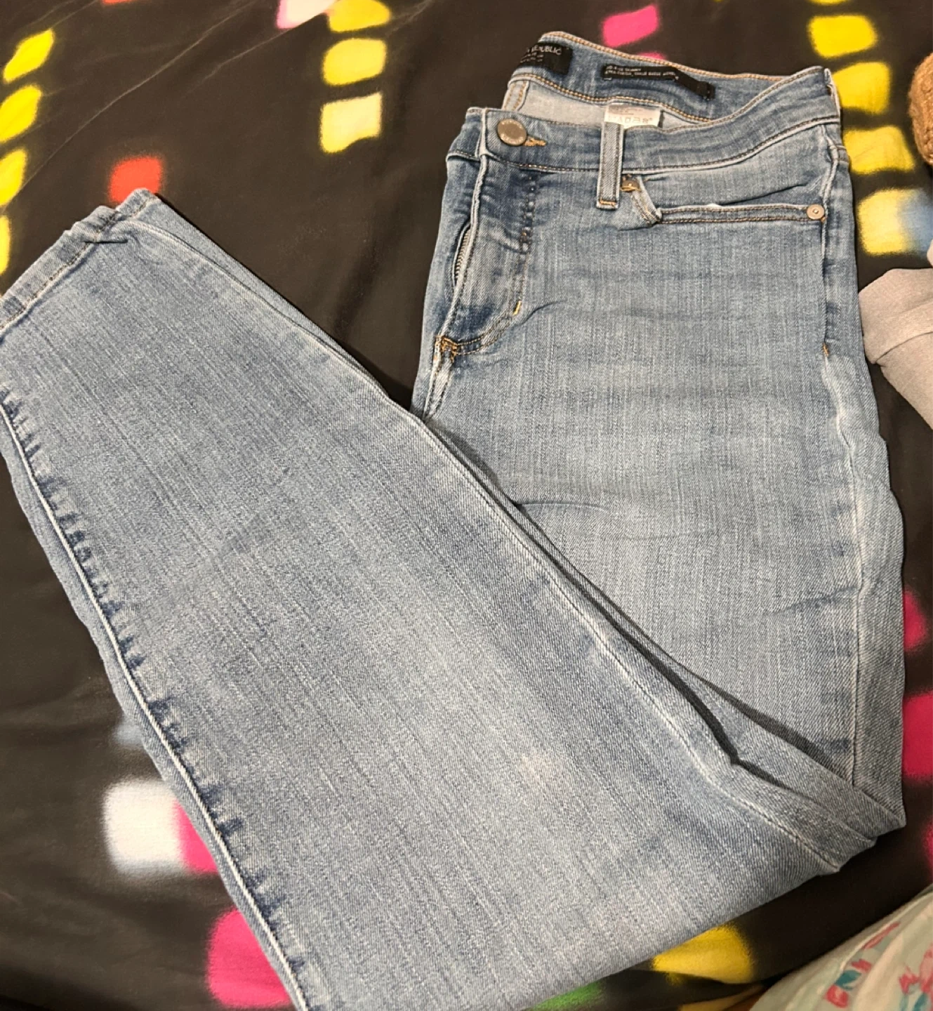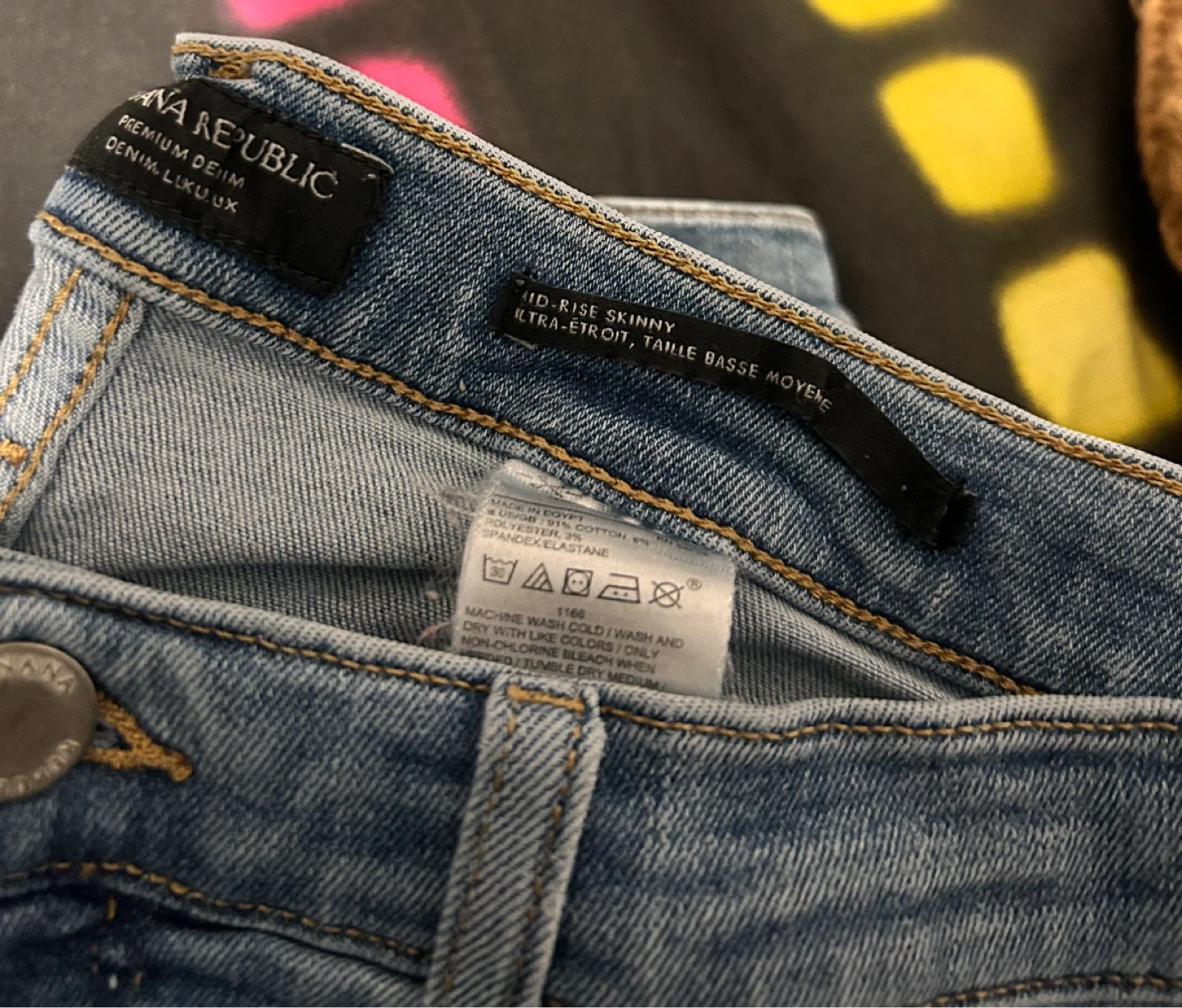 Selling a pair of Banana Republic mid-rise skinny jeans in size 6! They're in great condition and ready for a new home. These jeans are made from a comfortable blend of cotton, polyester, and spandex for a bit of stretch. They have a classic denim look that’s perfect for everyday wear