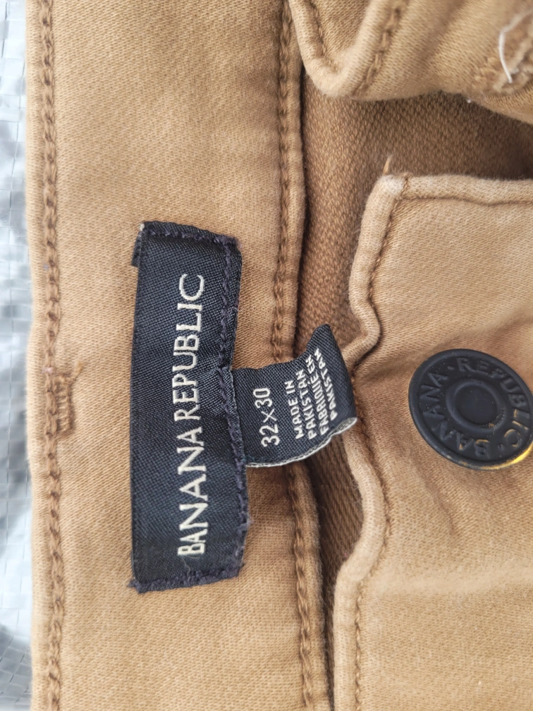 25Selling a pair of Banana Republic slim fit pants in size 32x30. They're in great shape and ready for a new home! The colour is a nice neutral tan.
