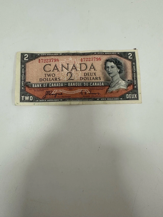 Check out this vintage Bank of Canada Two Dollar bill featuring Queen Elizabeth II, a piece of Canadian history in your hands! This note is from 1954, adding to its collectible appeal. * **Denomination:** $2 * **Issuer:** Bank of Canada * **Year:** 1954 * **Feature:** Queen Elizabeth II Portrait Imagine all the stories this bill could tell! Prices for similar collectibles can range, but I'm asking $15, making it a reasonable addition to your collection. If the ad is up, it's still available!