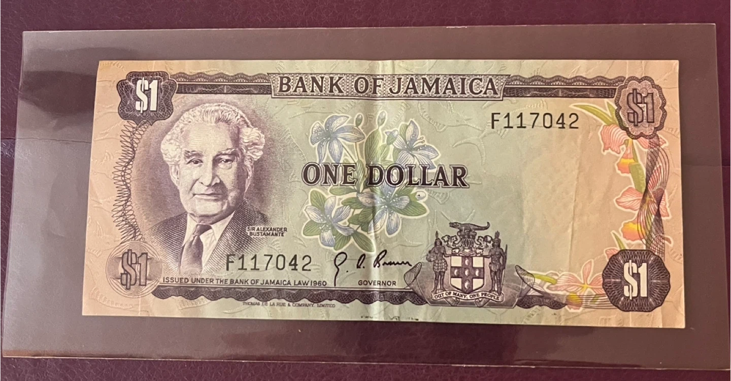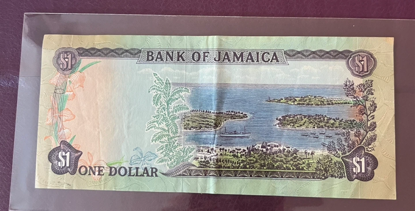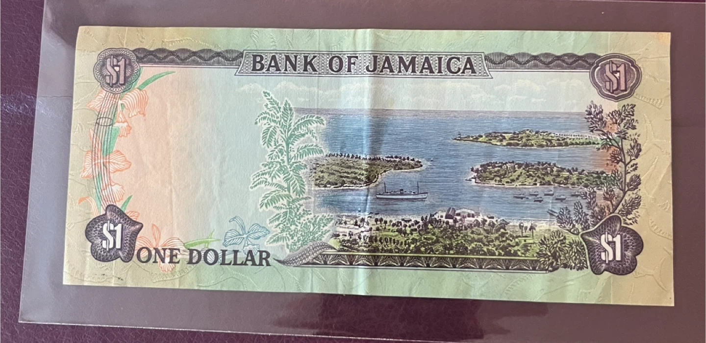 284Available only today Selling a Bank of Jamaica one dollar bill. It features a portrait of Sir Alexander Bustamante and a scene of the Jamaican coastline
