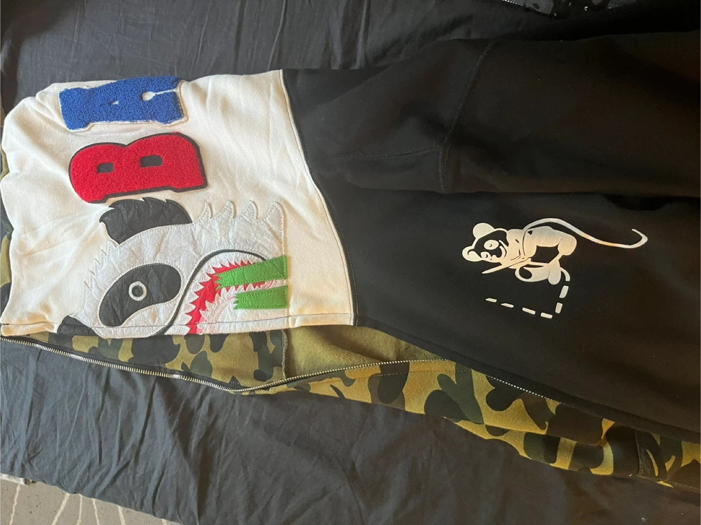 11Selling a BAPE hoodie in size L and M . It The material is 100% cotton. It's in great condition Comes with bape bag WILL DO LOWER PRICE IF SERIOUS COMES WITH BAPE BAG