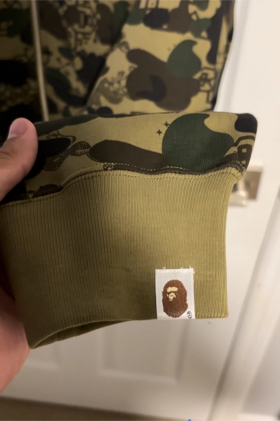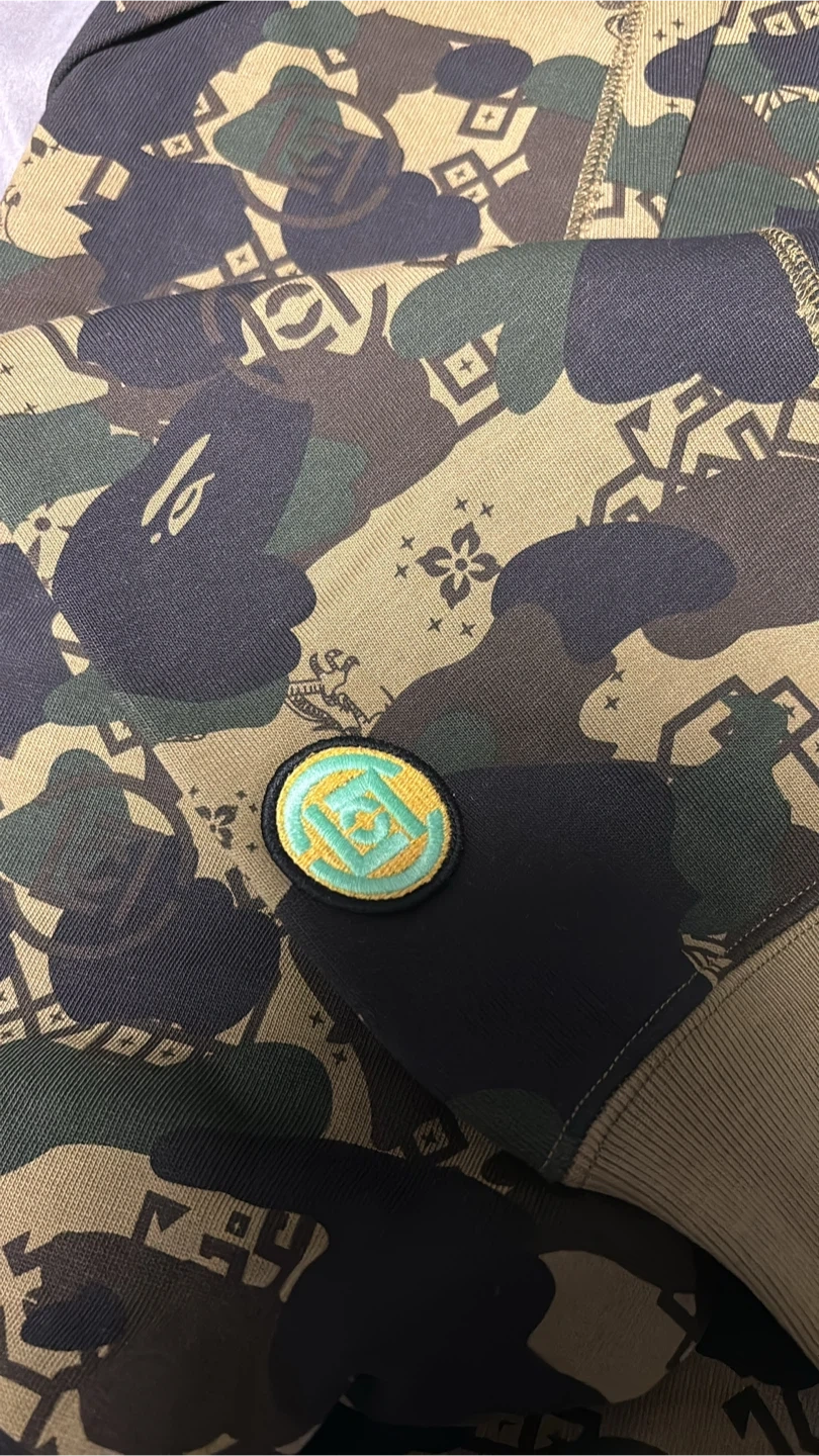 10Selling a BAPE full zip hoodie with a cool camo and shark design! It's in great condition and ready for a new home. Perfect for adding some streetwear style to your wardrobe
