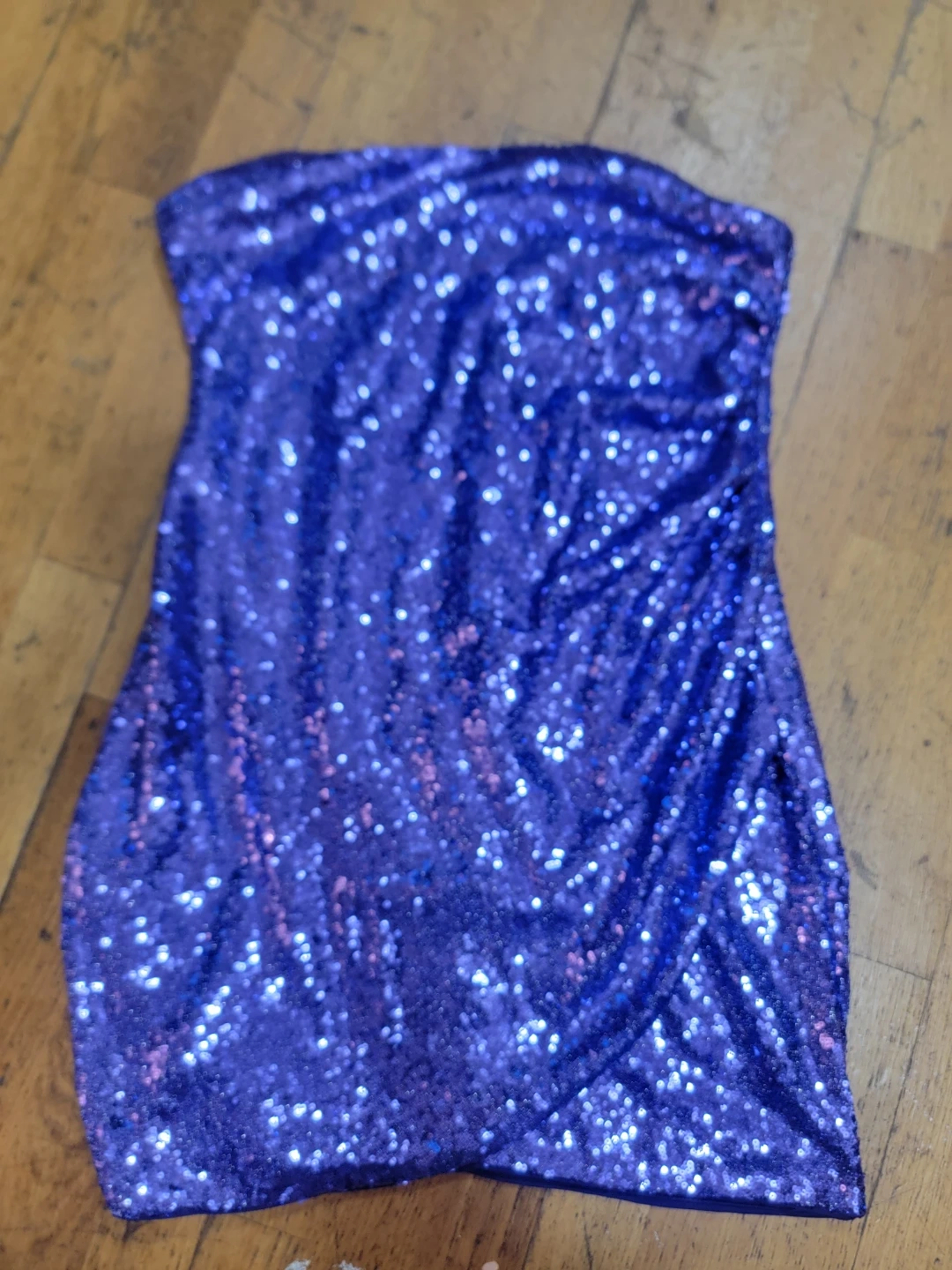 Here's a fun and sparkly sequin mini dress from dynamite! It's a vibrant purple colour that's sure to make you stand out. Perfect for a night out or any special occasion
