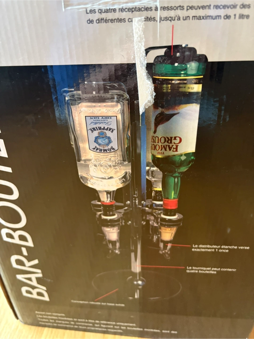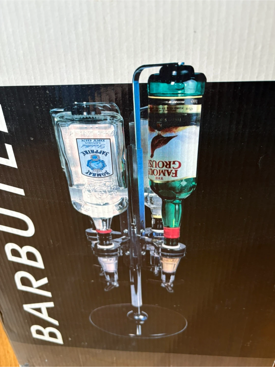 75Selling a Bar Butler bottle dispenser! It holds up to four bottles and dispenses liquor easily. Great for home bars or parties. Comes with the original box! Pick up at Morley trail NW