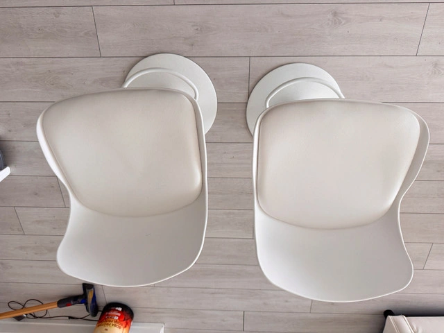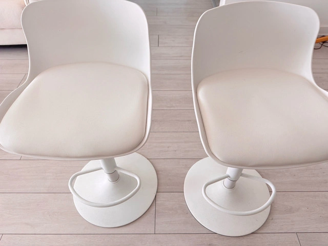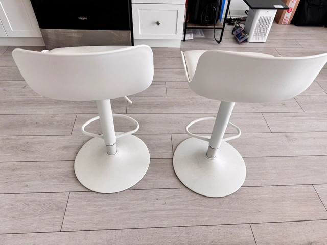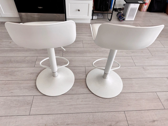 18These modern white bar stools are in good condition and ready to add a touch of elegance to your kitchen or bar area. Featuring a sleek design with a comfortable seat and sturdy base, they're perfect for entertaining or enjoying a casual meal. Note these are used. * Colour: White * Style: Modern * Material: Faux Leather, Metal * Quantity: 2 Based on recent Kijiji sales, a similar set of bar stools typically sells for around $80 - $150. I've priced these competitively for a quick sale. If you're seeing this ad, the stools are still available!