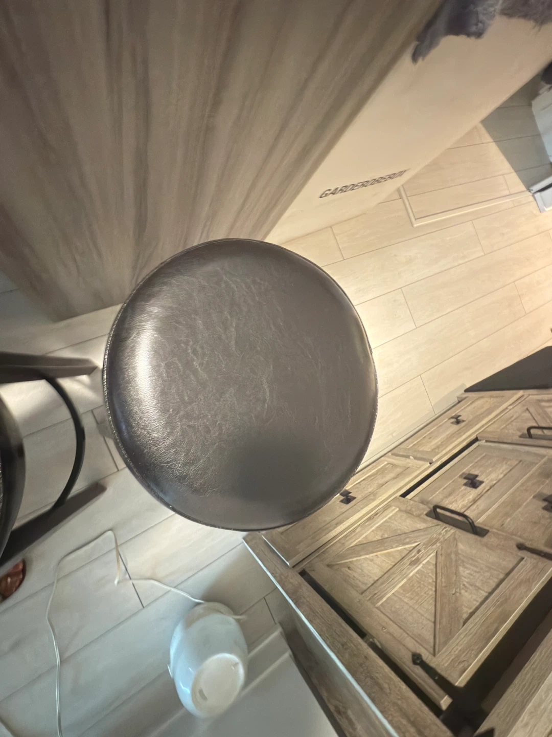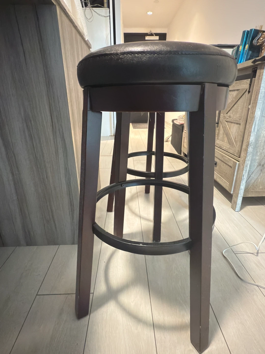 93Selling a set of two bar stools! They're in good condition and would be perfect for a kitchen island or bar area. The stools have a dark wood finish and a padded seat for extra comfort