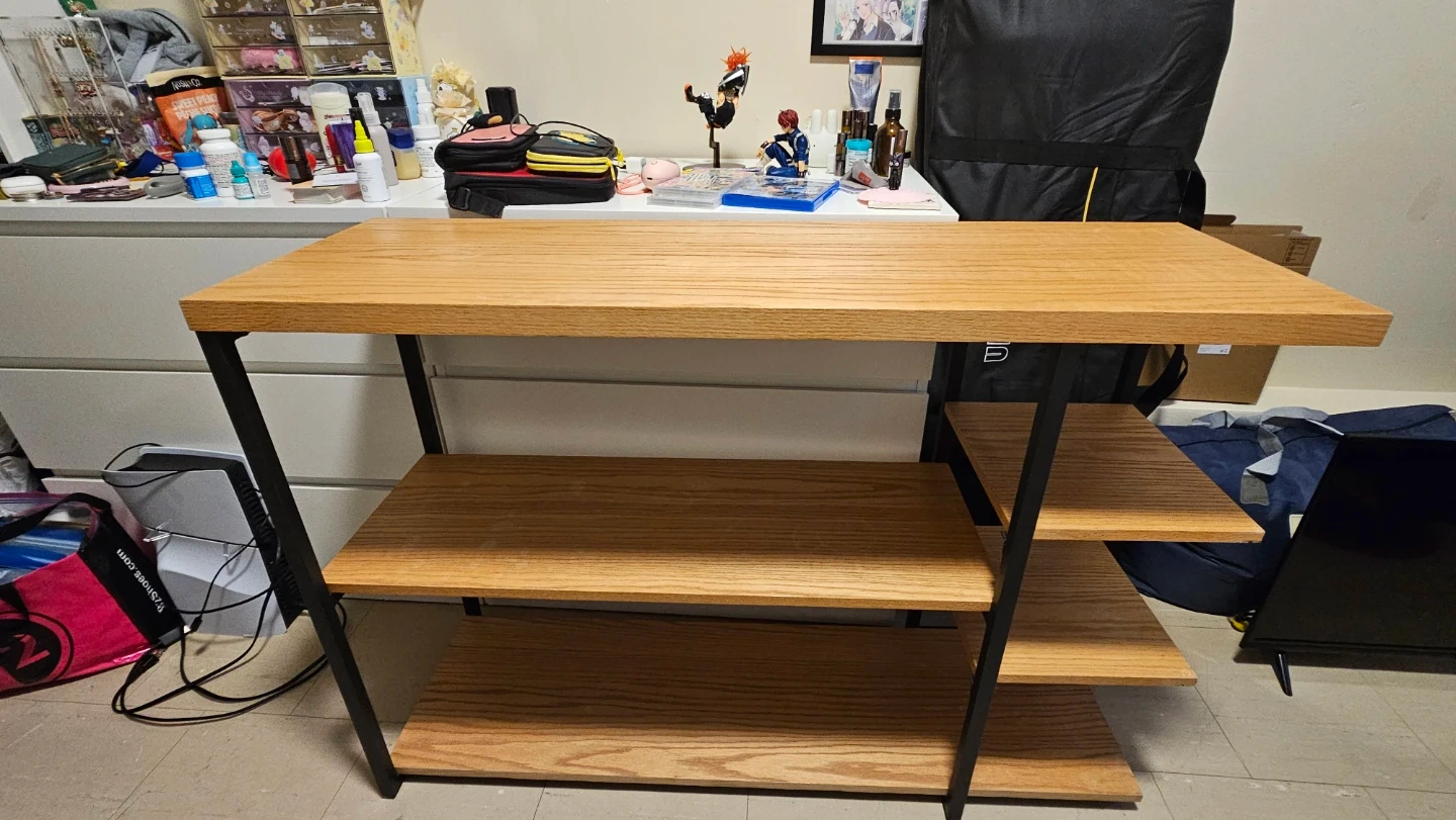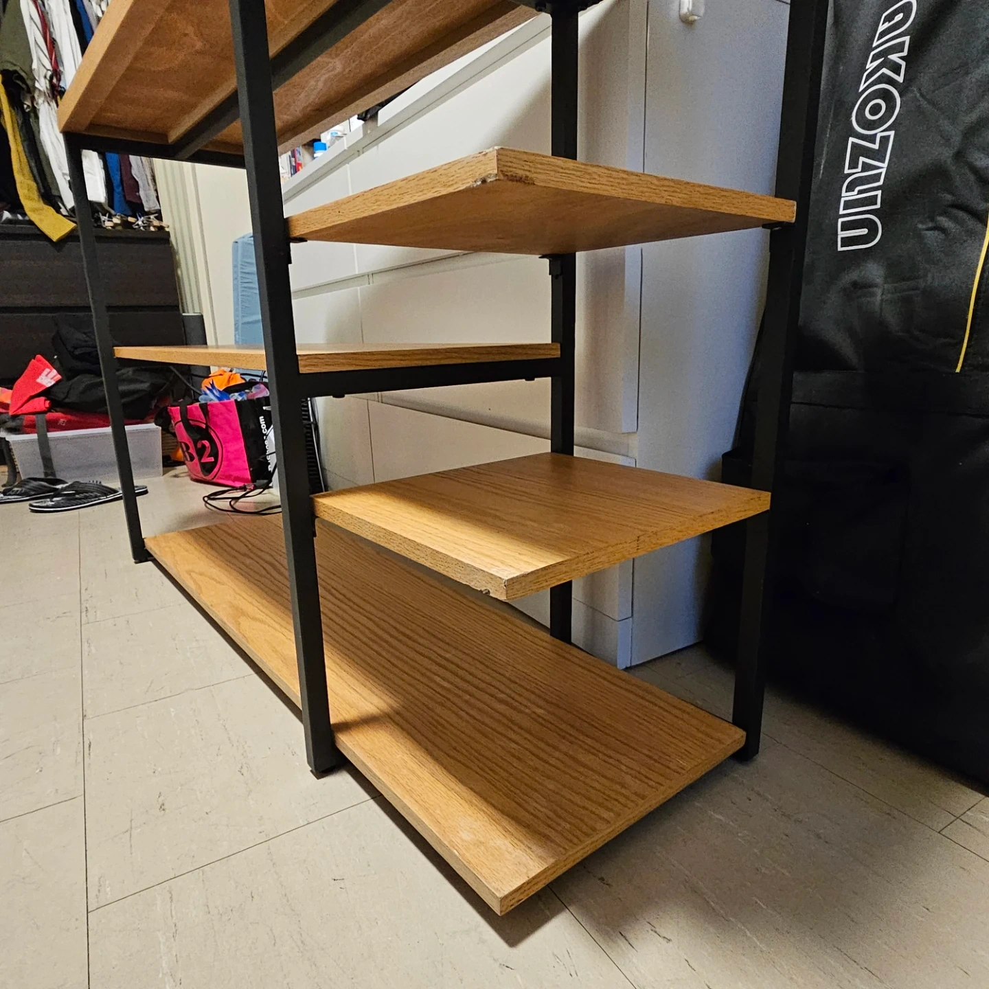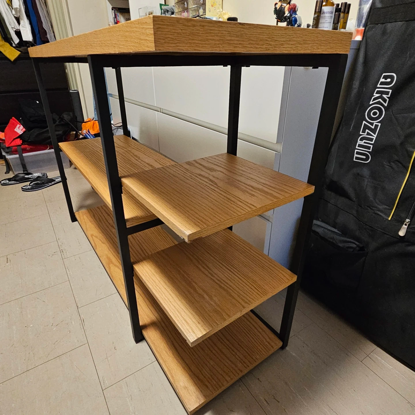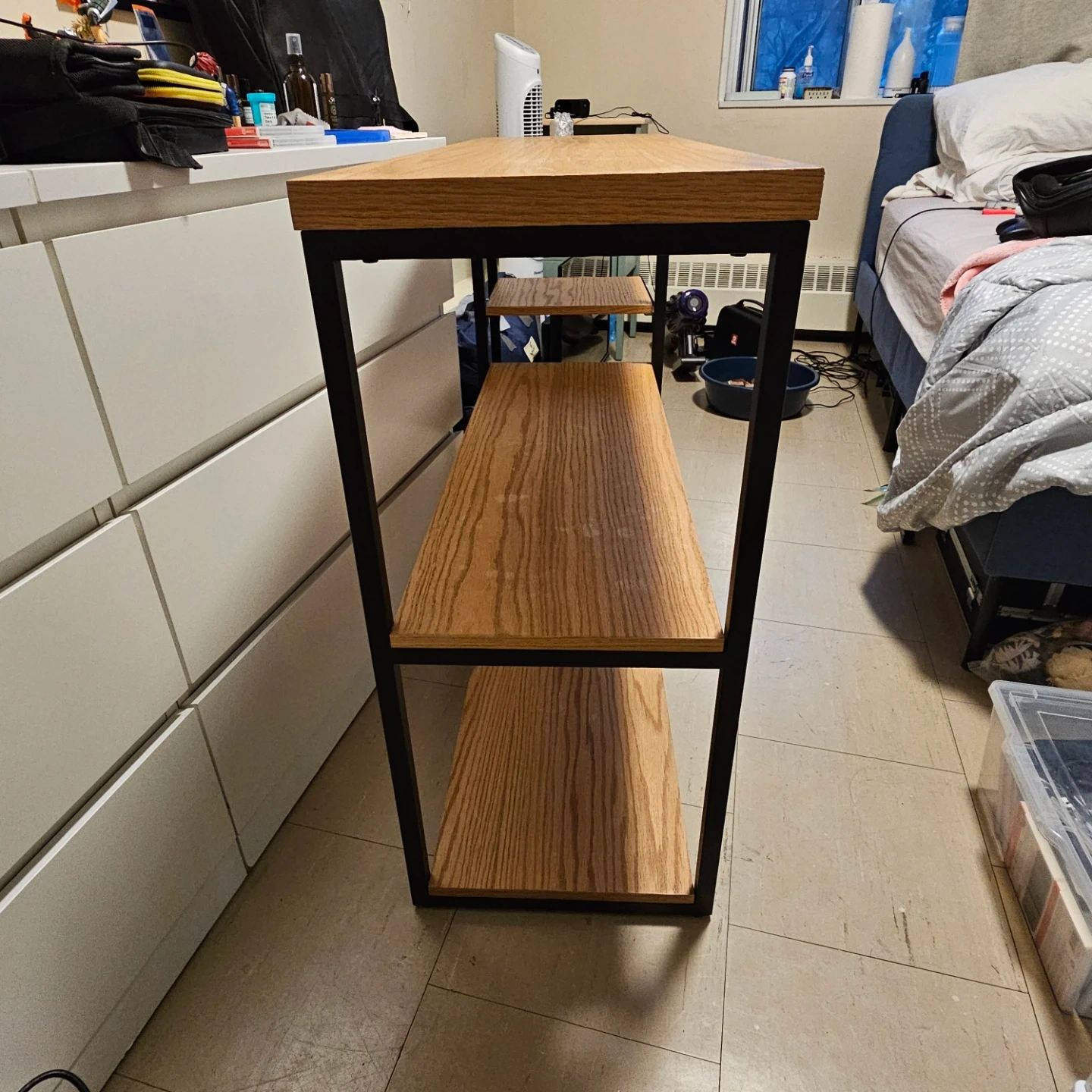217110x35x77cm LWH Very sturdy. Held my TV and PS5 and other items. Very light to carry for the average person. There are water stain(?) marks from the previous owner. Has been discounted. Table has been dusted and cleaned for purchase. Pick up and cash only near Don Mills and Finch. Can deliver if you pay.