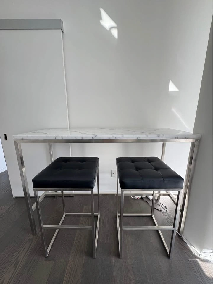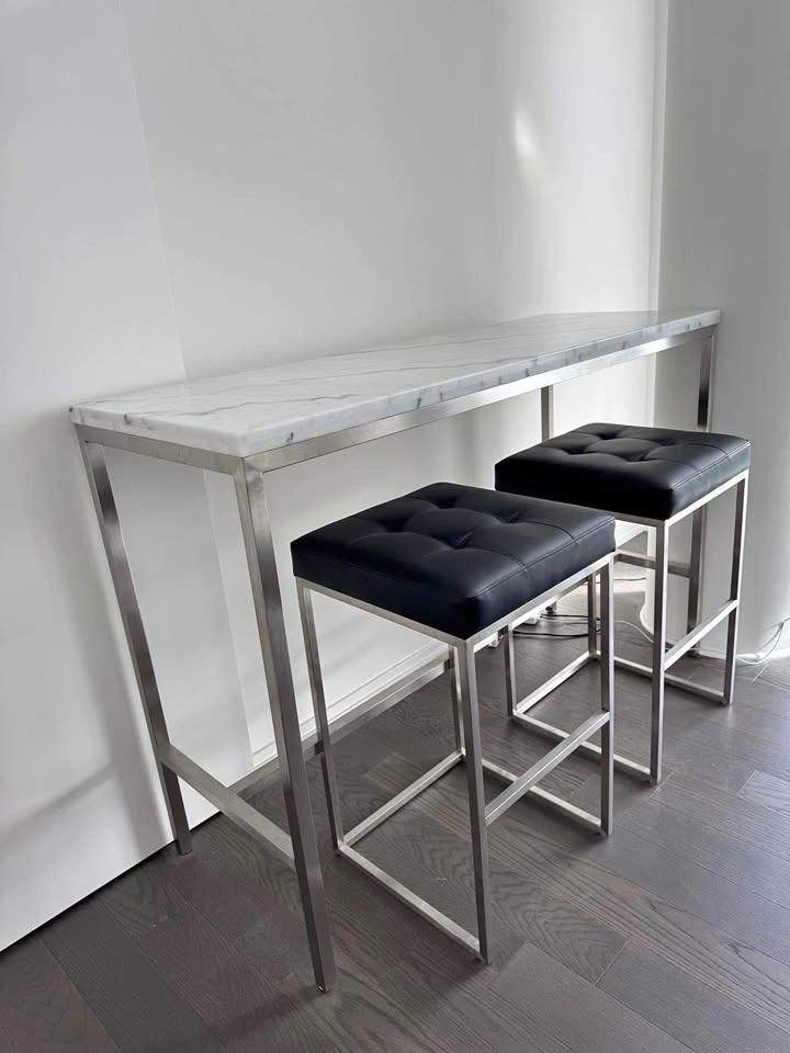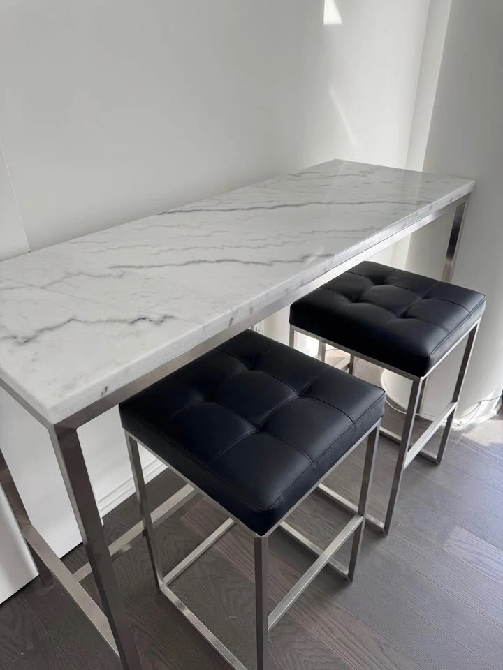 Bar Table Marble Top With Stainless Steel Frame With Bar Stools