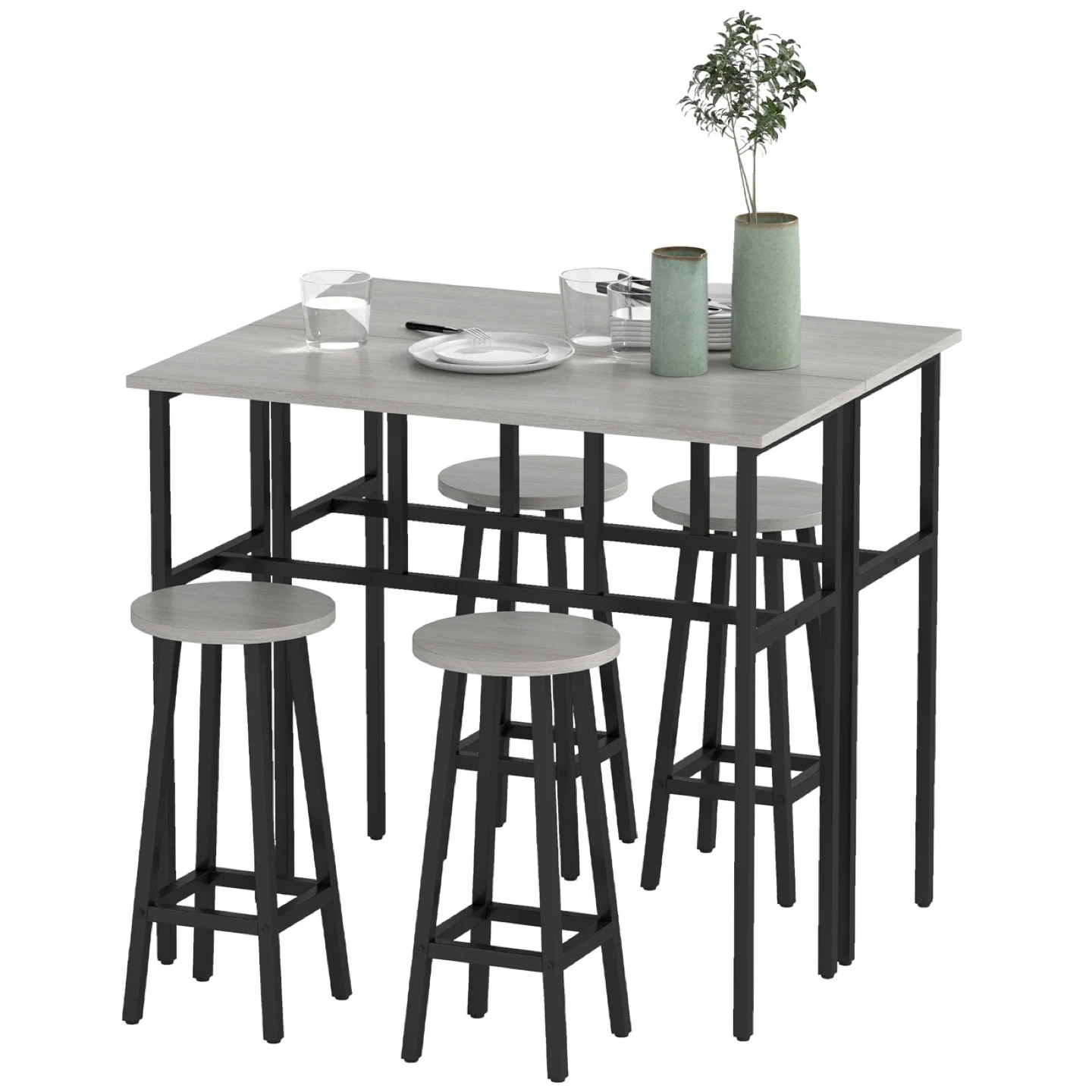 Bar Table Set of 6, 2 Breakfast Tables and 4 Stools