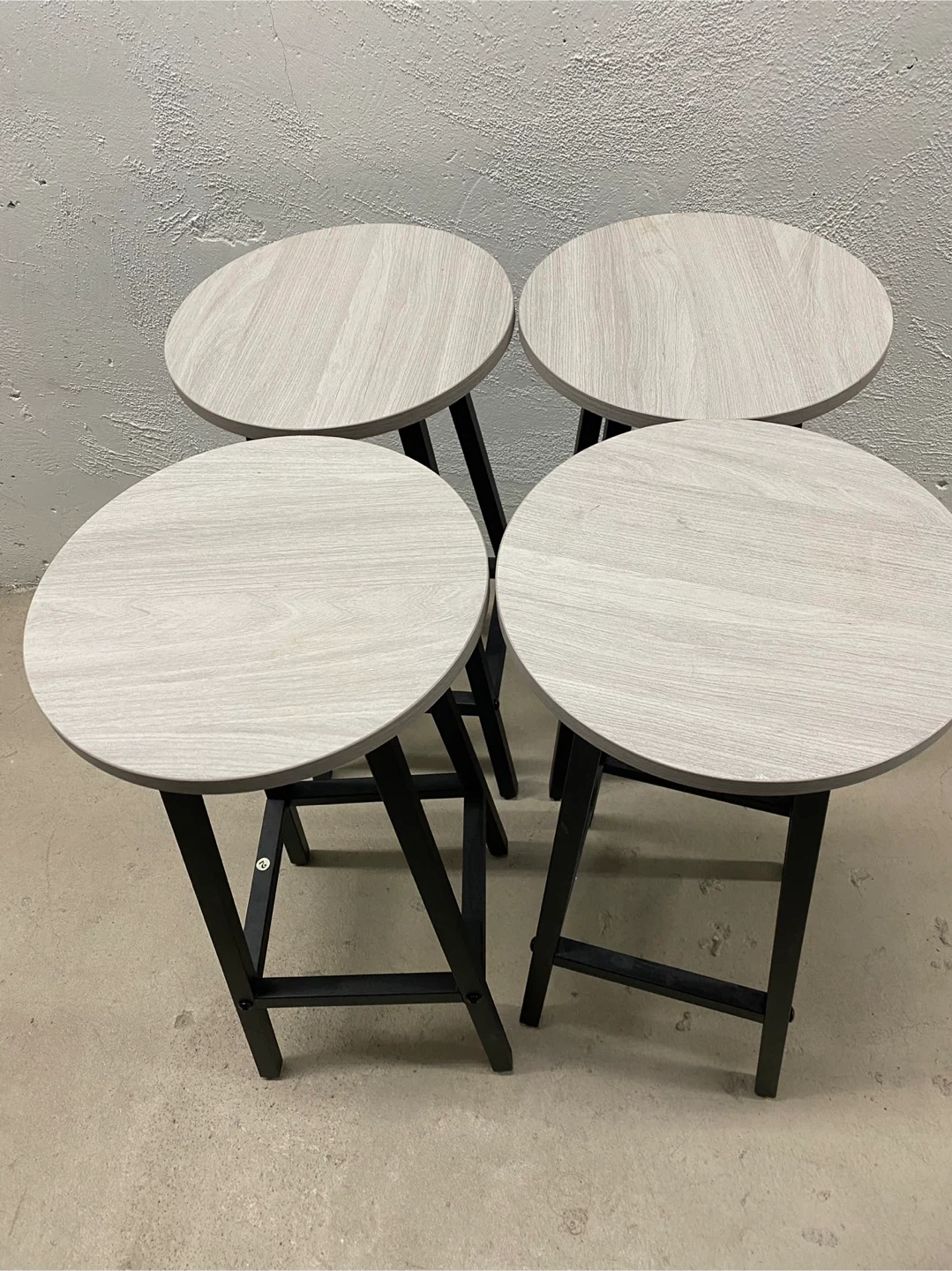 45Bought from Walmart. CoSoTower Bar Table Set of 6, Bar Table and Stools for 4. The table is 39.4" (100 cm) long, 15.7" (40 cm) wide, and 35.4" (90 cm) high. The stools are 23.6" (60 cm) high with a seat diameter of 11.6" (29.5 cm). It's a great set for a kitchen or dining area. One of the tables has a slight nick (shown in the pictures), but otherwise everything else in good condition.