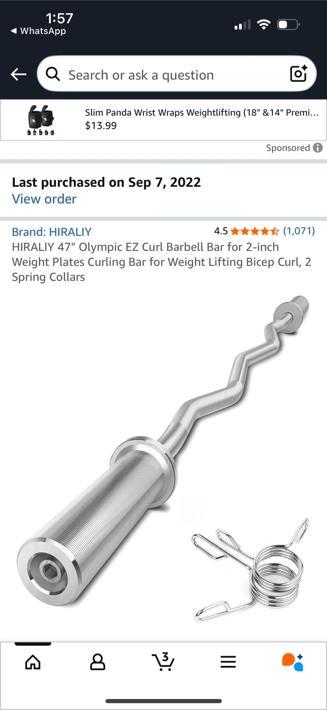 39HIRALIY 47" Olympic EZ Curl Barbell Bar for 2-inch Weight Plates Curling Bar for Weight Lifting Bicep Curl, 2 Spring Collars