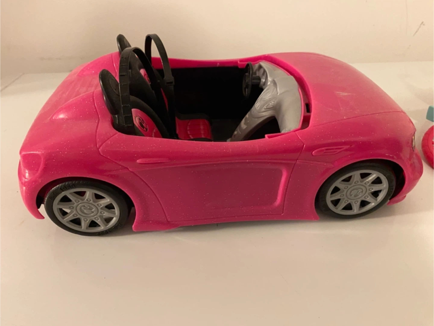Selling a Barbie pink convertible car! It's in good condition and ready for new adventures. Perfect for any Barbie fan!