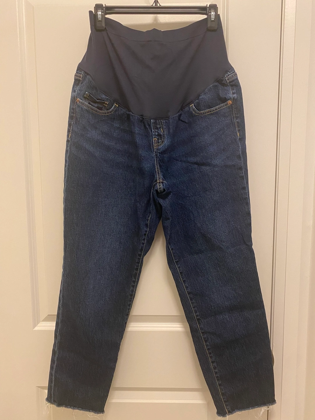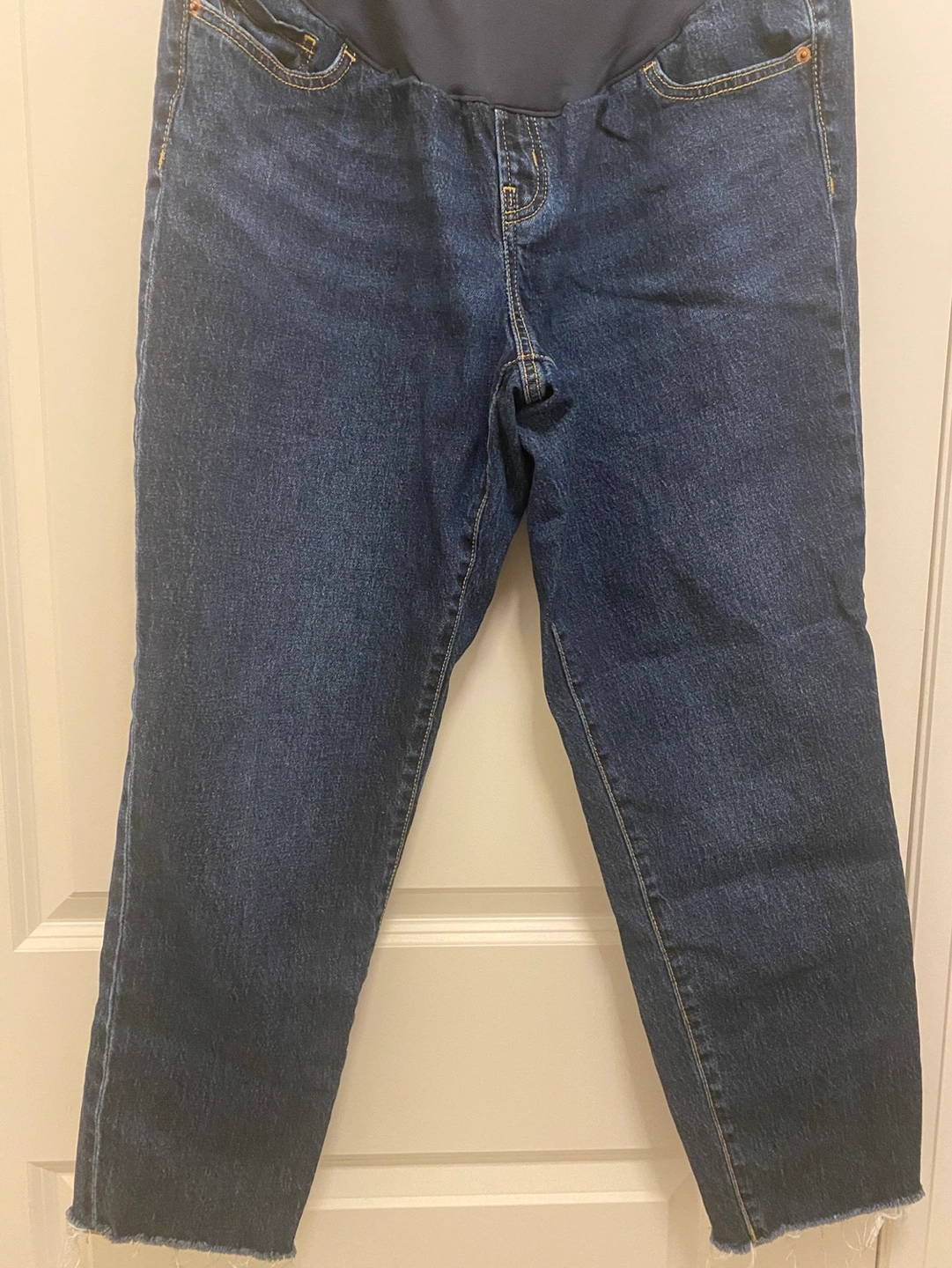 241Dark wash maternity jeans. Over the belly band. Cropped, frayed hem. Excellent condition. https://oldnavy.gapcanada.ca/browse/product.do?pid=5787770031402&locale=en_CA#pdp-page-content