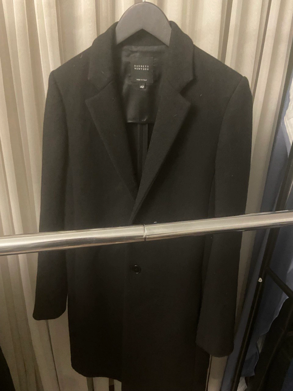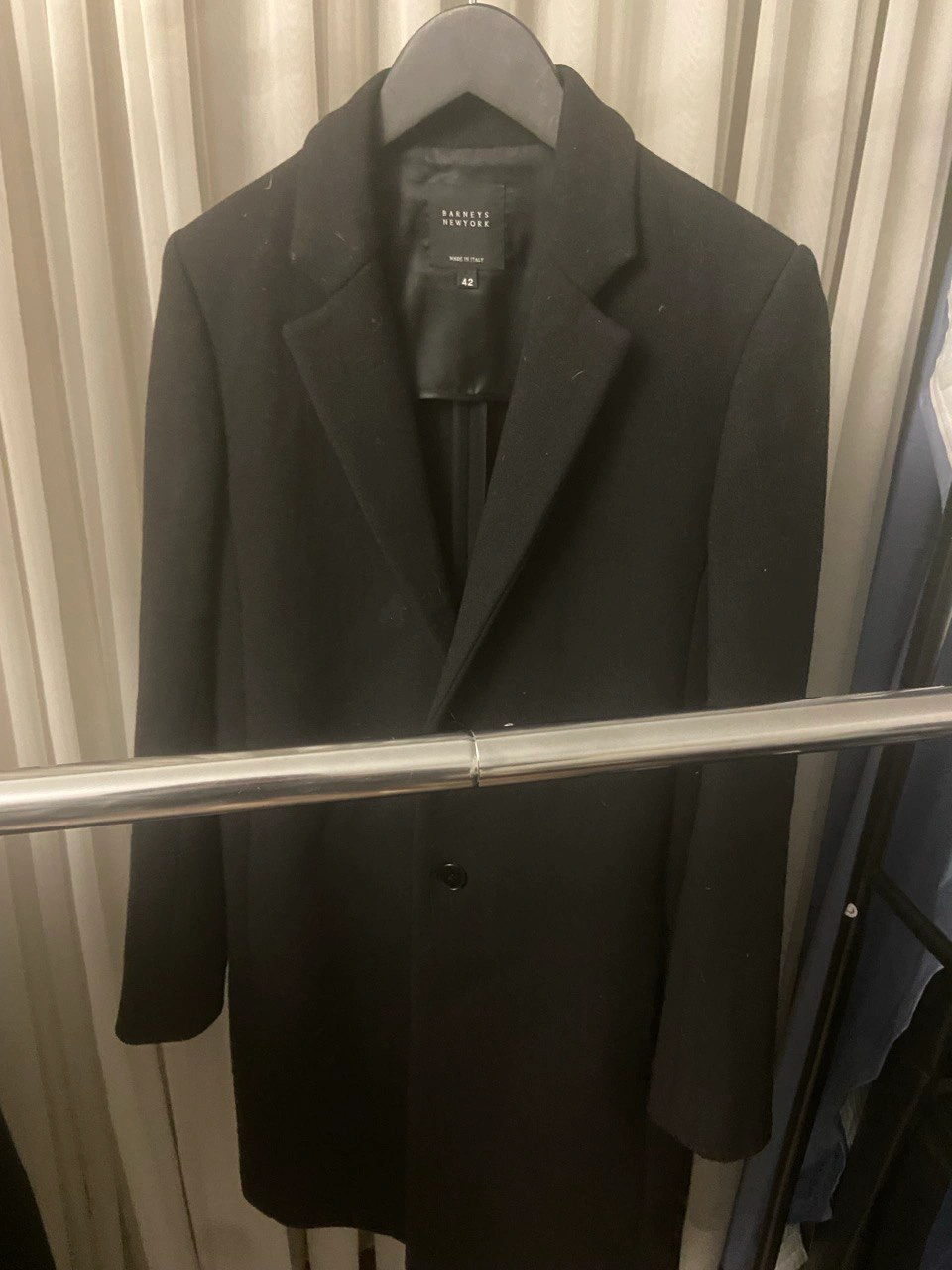 Selling a Barneys New York overcoat in black. It's a size 42 and made in Italy. It's in great condition and ready for a new home!
