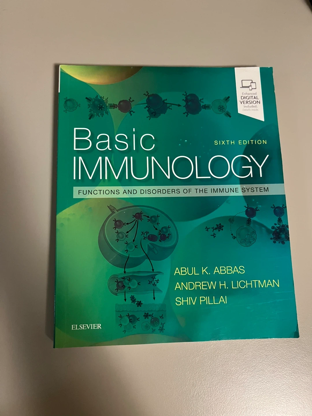 Selling a copy of Basic Immunology, Sixth Edition, by Abul K. Abbas, Andrew H. Lichtman, and Shiv Pillai. It covers functions and disorders of the immune system and includes an enhanced digital version with details inside. Perfect for students or anyone interested in immunology!