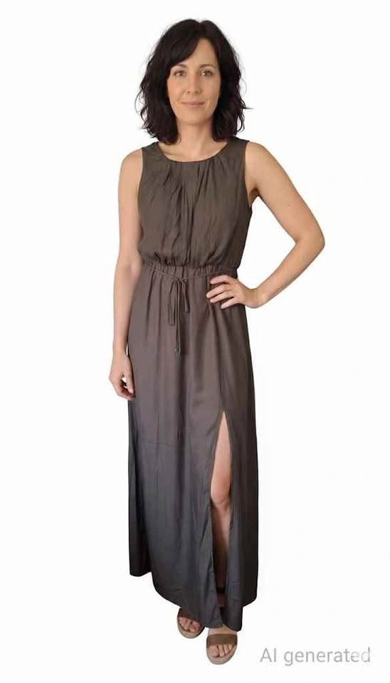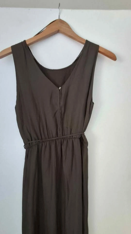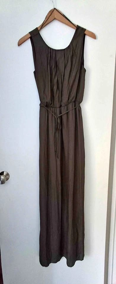 10Brand: Zara Basic Size: Extra Small (XS) Color: green-brown/Olive(Earthy Brown-Grey) Style: Sleeveless Maxi Dress Key Features: Adjustable Drawstring Waist Detail: High Slits on Both Sides (Double Slit) Pick up in Ajax. Westney and Finley area. South of the 401.