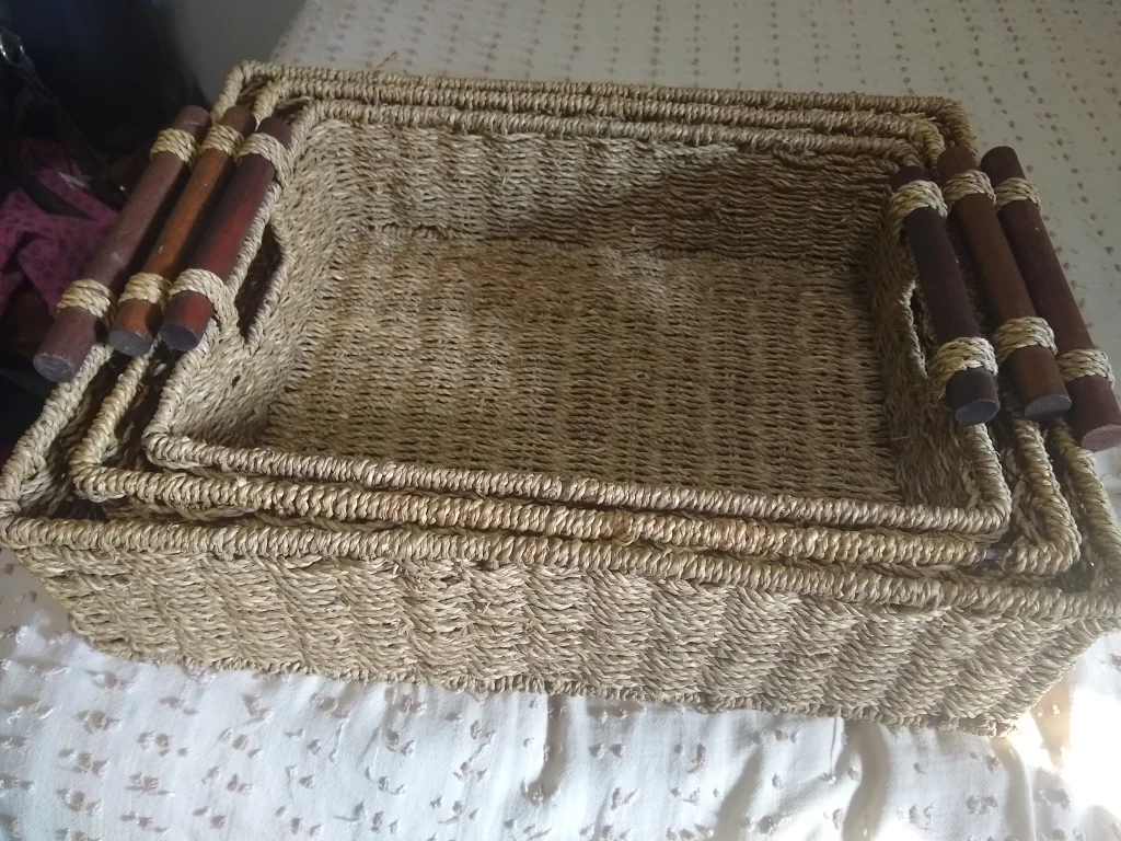 3743 sisal Baskets Fits into each other The largest 18 ×13 (inches) Medium 16 x 11.5 Small 14 × 10.5 Height 4.5 Goodbcondition Pick up only