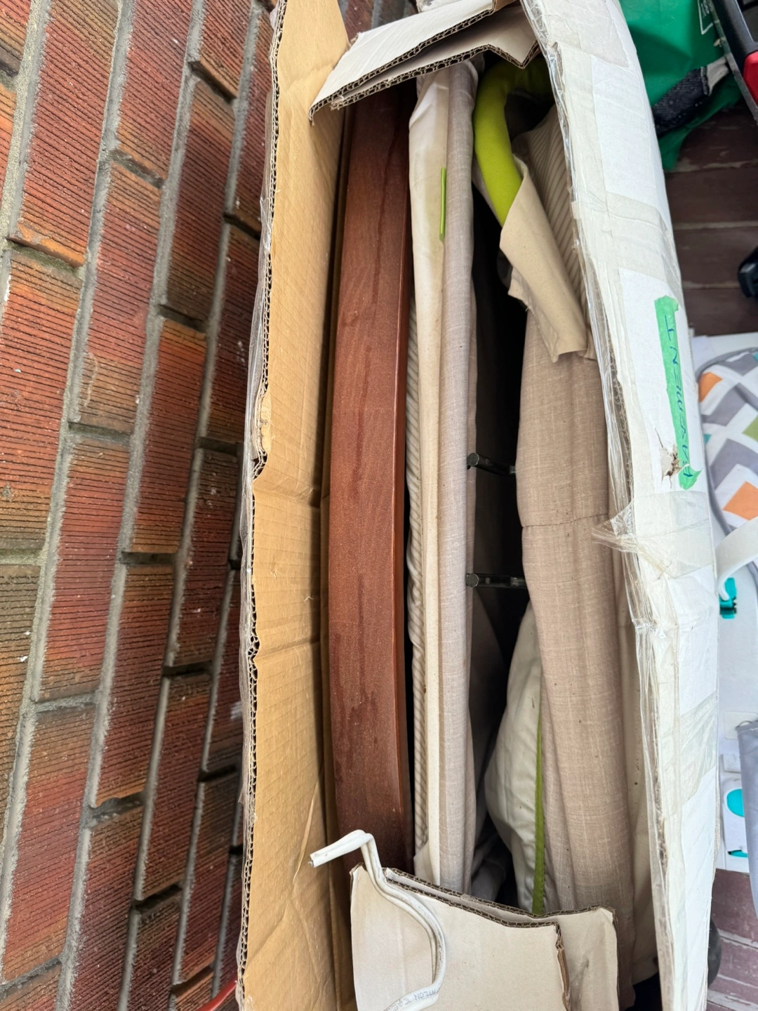 Do not have a picture of it assembled but all pieces are in box. Has a motion machine which requires 4 c batteries