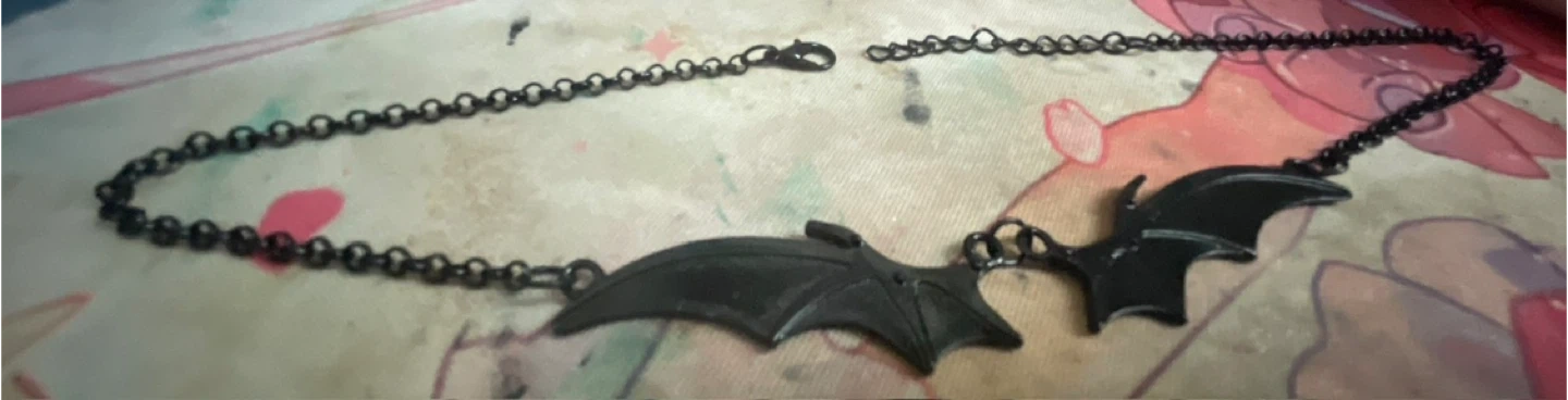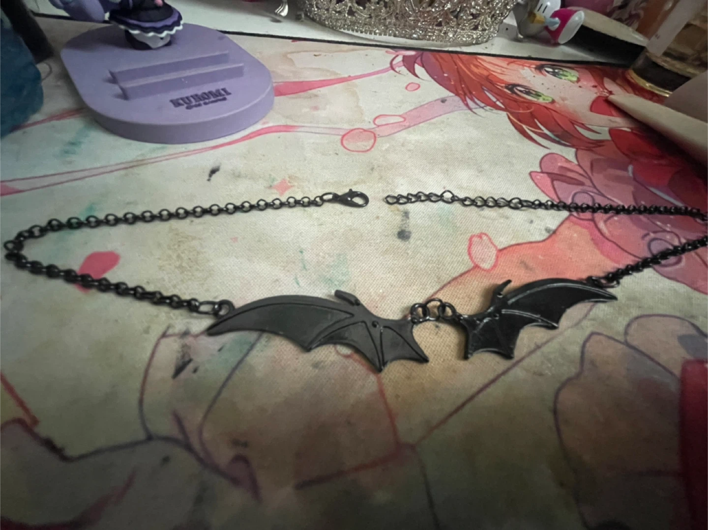 Selling a cool bat wing necklace! It's a dark black colour and in great condition. Perfect for adding a bit of edge to any outfit