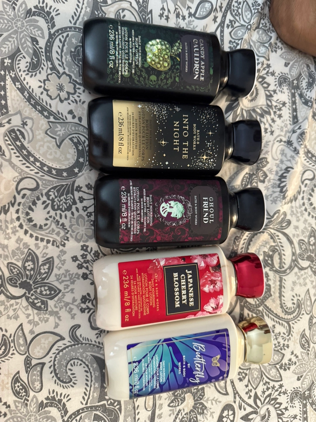 Selling a bundle of Bath & Body Works body lotions! Includes scents like Candy Apple Cauldron, Into the Night, Ghoul Friend, Japanese Cherry Blossom, and Butterfly. All are 236 ml / 8 fl oz bottles. Perfect for trying out different scents or stocking up on your favourites $8 each