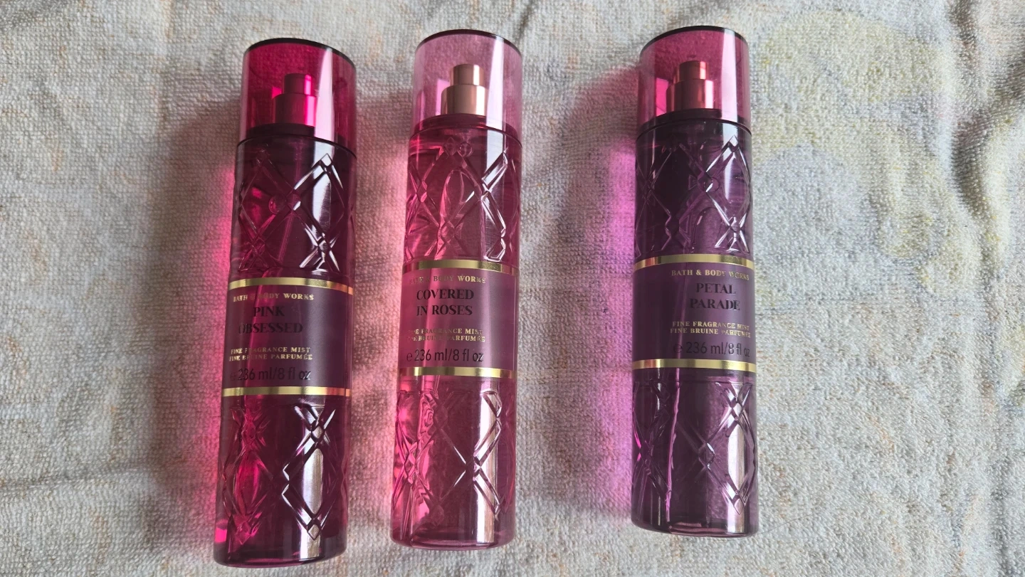 254Selling a bundle of three Bath & Body Works Fine Fragrance Mists. Includes Pink Obsessed, Covered in Roses, and Petal Parade. New, unused. $10 each or $25 for all