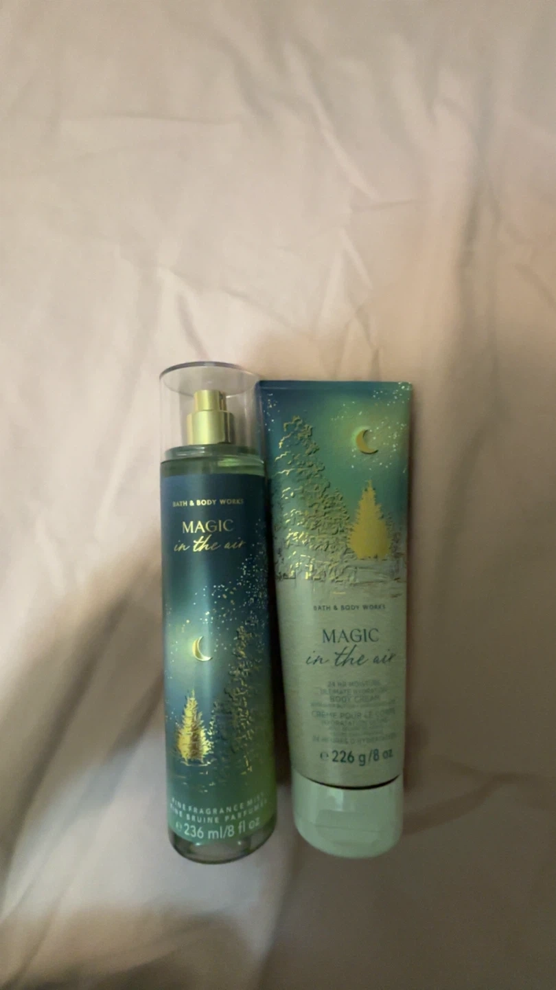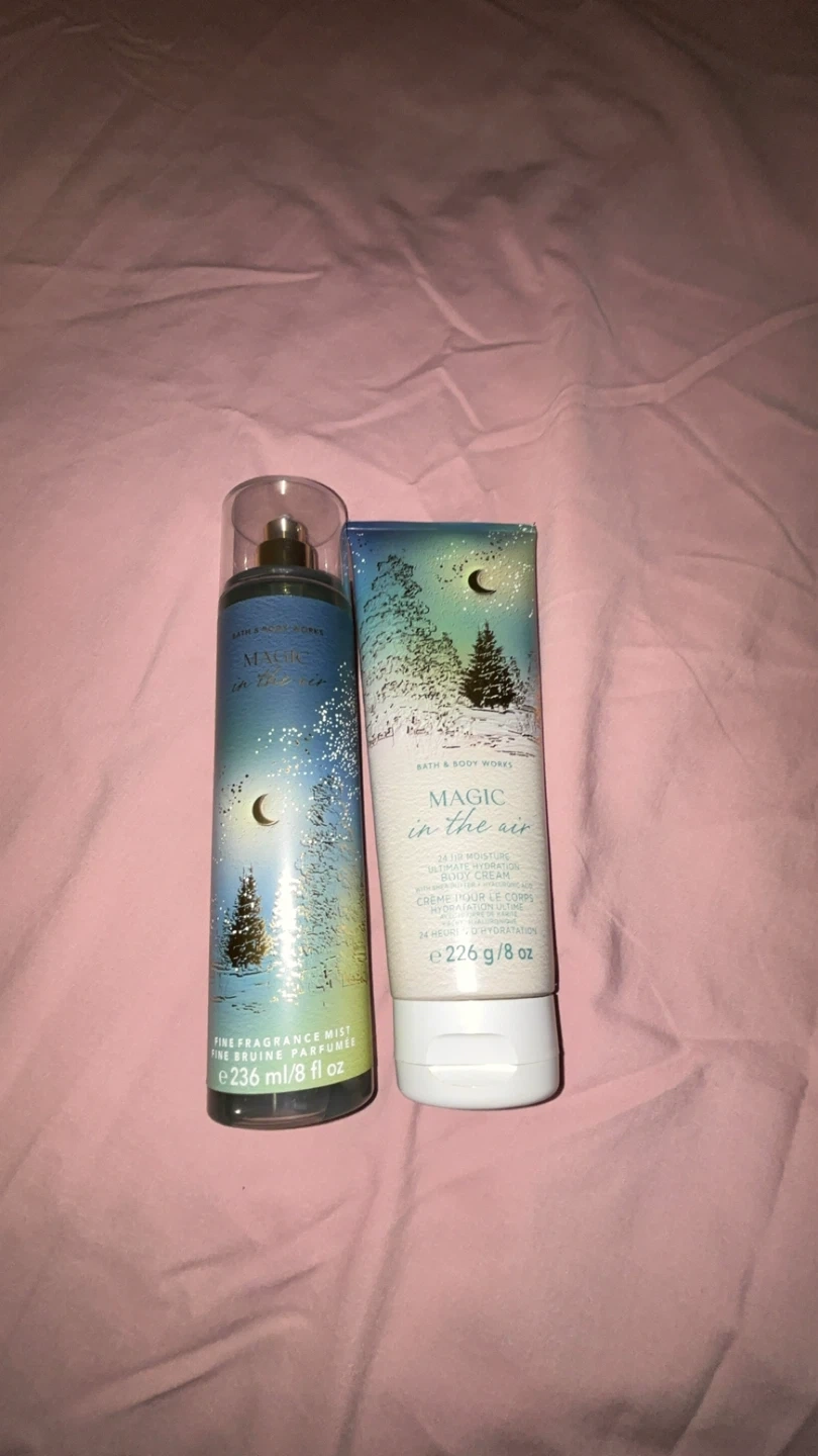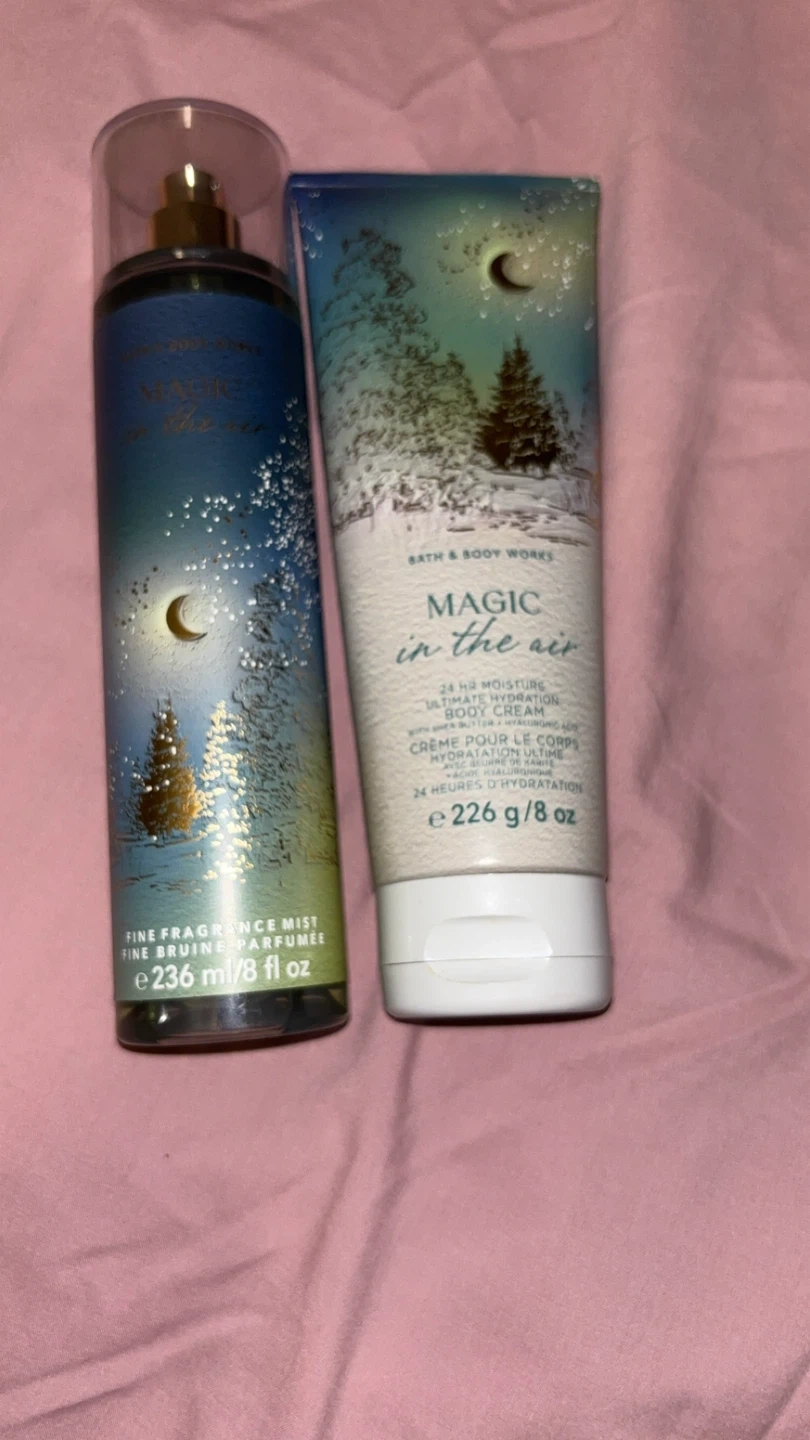 Selling a Bath & Body Works 'Magic in the Air' set! Includes a fine fragrance mist (236 ml/8 fl oz) and an ultimate hydration body cream (226 g/8 oz). Perfect for layering the scent and keeping your skin moisturized