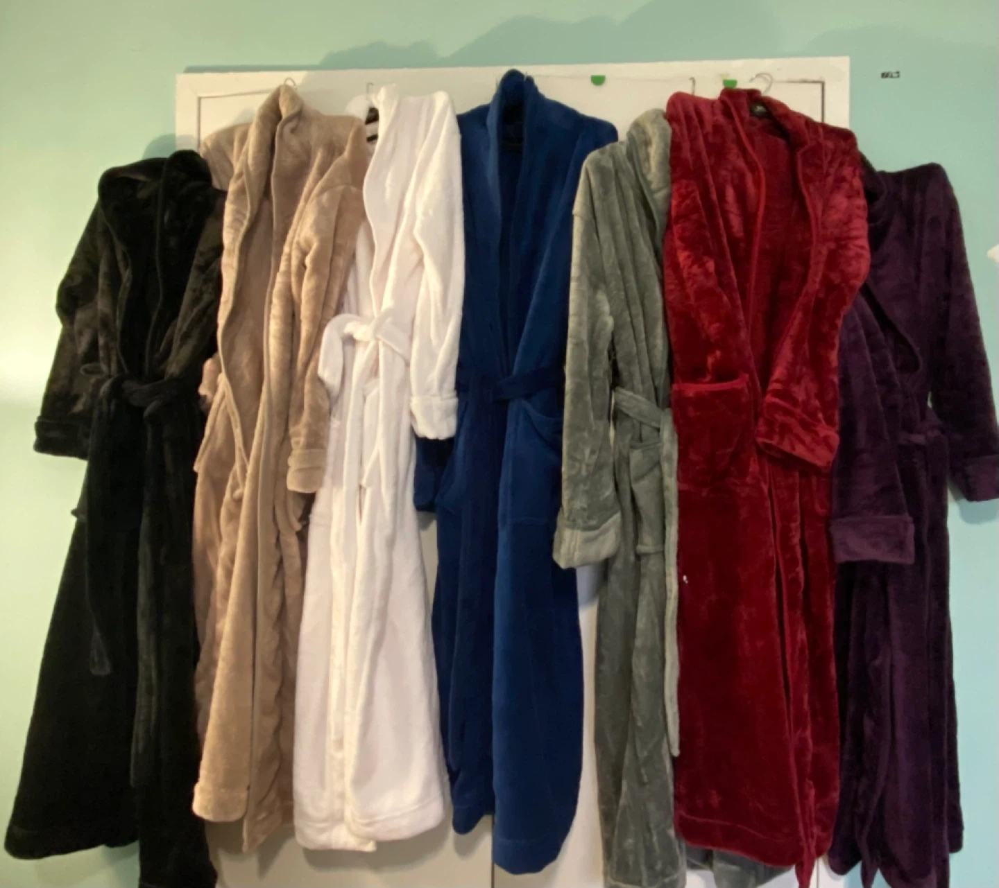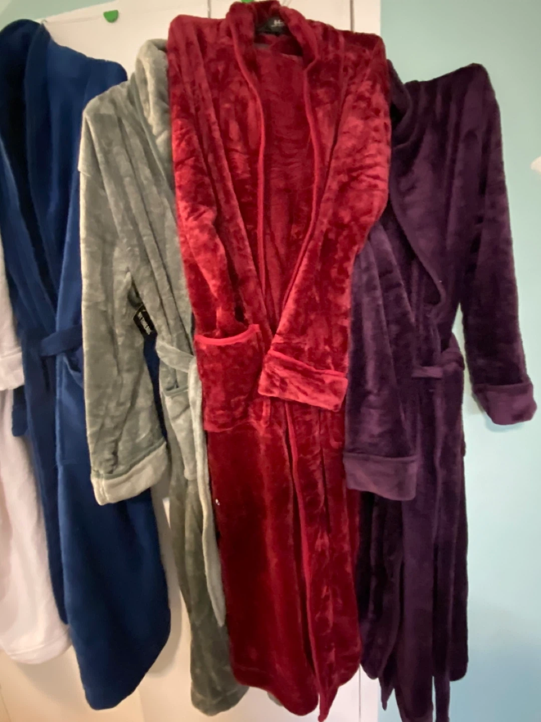 361 - 20$ 2 - 30$ 3 - 45$ Snuggle up in these super soft bathrobes! Available in a variety of colours and sizes from S/M to XL . Features include a hood, hook loop, wrap belt, and two front pockets. Perfect for cozy nights in!