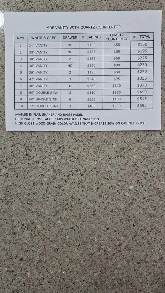 10Bathroom Cabinet 48" with 6 Drawers: 260$ Quartz Countertop: 110$ Available in any size and color.