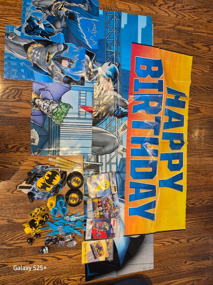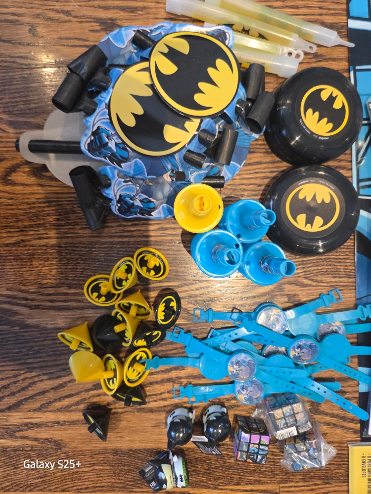 Selling a bundle of party supplies with Batman and Avengers themes! Includes balloons, invitations, 2 wall decals, happy bday banner and fun party favors for a birthday party or special event