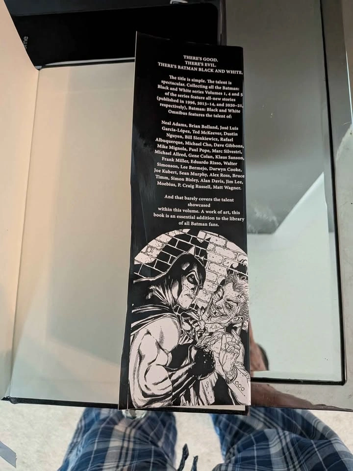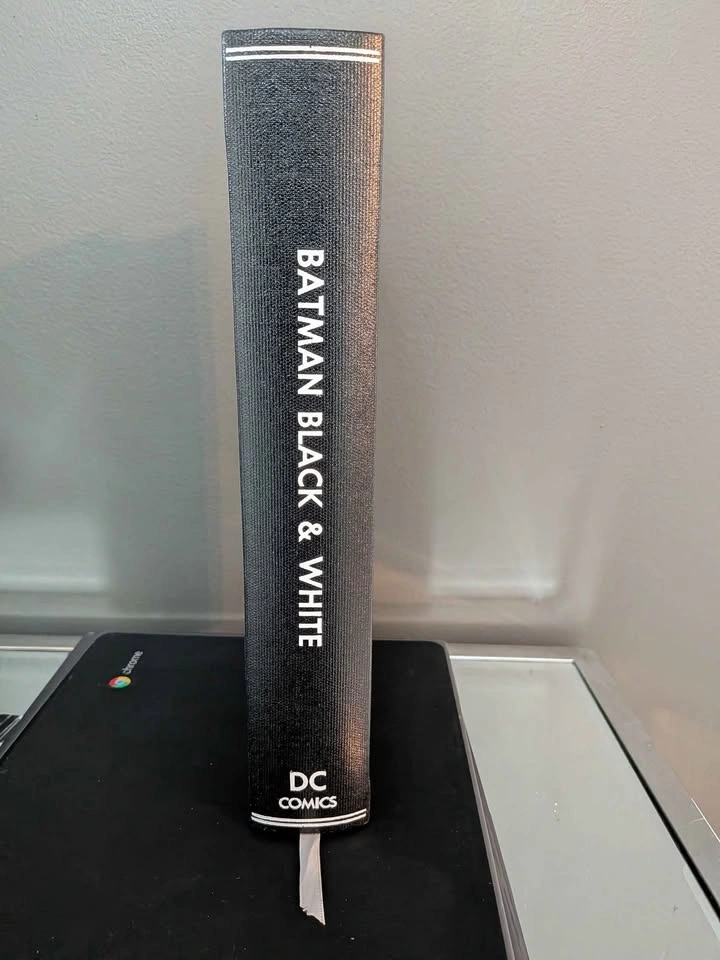 CAD 110 This is a custom bound omnibus edition that I made from the original comics. Binding was done in the Lehmann book binding in Kitchener. The set contains Batman Black and White vol 5 issue 1-6 published in 2021 which was not collected in the Omnibus format up till now Inside cover has a crease. Length 27 cm Width 17 cm Slightly smaller compared to regular omnibus dimension Please check the pics for condition, if required ask for more pics Collects: Batman Black and White Vol 1 Issue 1-4 (1996). Batman Black and White Vol 4 Issue 1-6 (2013), Batman Black and White Vol 5 Issue 1-6 (2021) "You don't get heaven or hell. Do you know the only eward you get for being Batman? You get to be Batman。 Neil Gaiman The Dark Knight stars in this extraordinary collection of short stories illustrated in stark black and white by some of the world's most respected comics artists and writers. This collection examines every aspect of Batman with startling new approaches--detective, crimefighter, avenger, hero, creature of the night, and more. A really interesting series of vignettes into the mythos behind Batman and the ways he has been portrayed over the years. The short form anthology format allows for the creator to bring out the best Batman story he can in six pages. It makes for instantly iconic interpretations of the character. The creator line-up for Black and White is stacked-imagine the New York Yankees lineup rom1927. The creative cast is artist-heavy, which caters to the black and white format. One has to pretty good to work without color.
