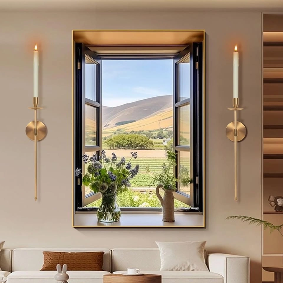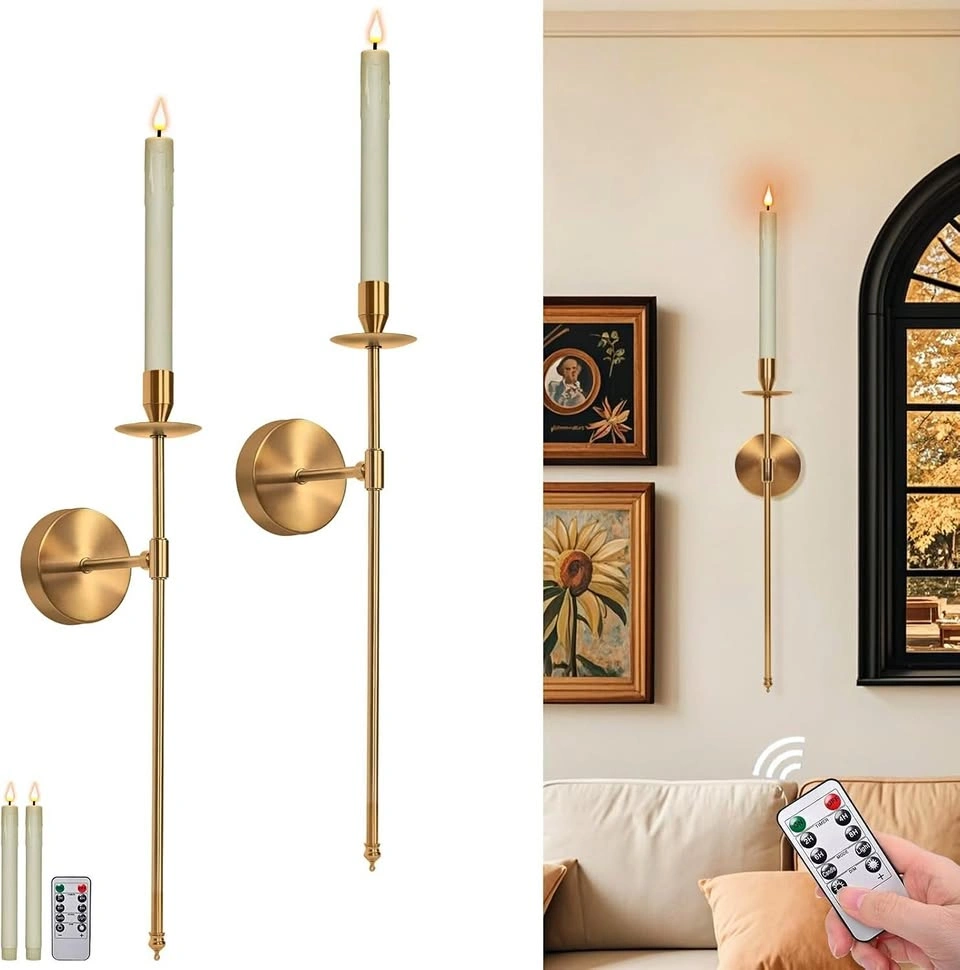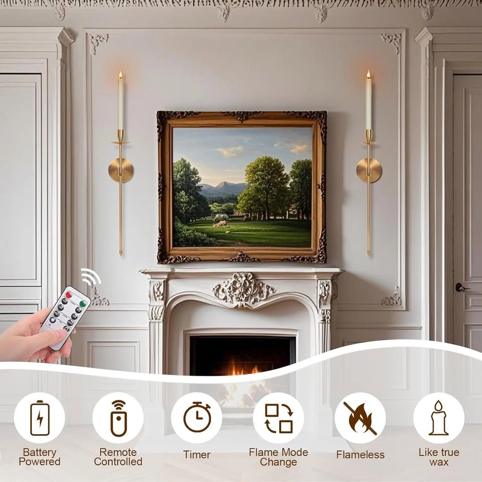 BNIB Battery Operated Vintage Wall Scones w Remote Control (Set of 2), Flameless Flickering Taper Timer Gold Finish #208 Pickup near 10800 Bayview Avenue, Richmond Hill If listing is up its still available
