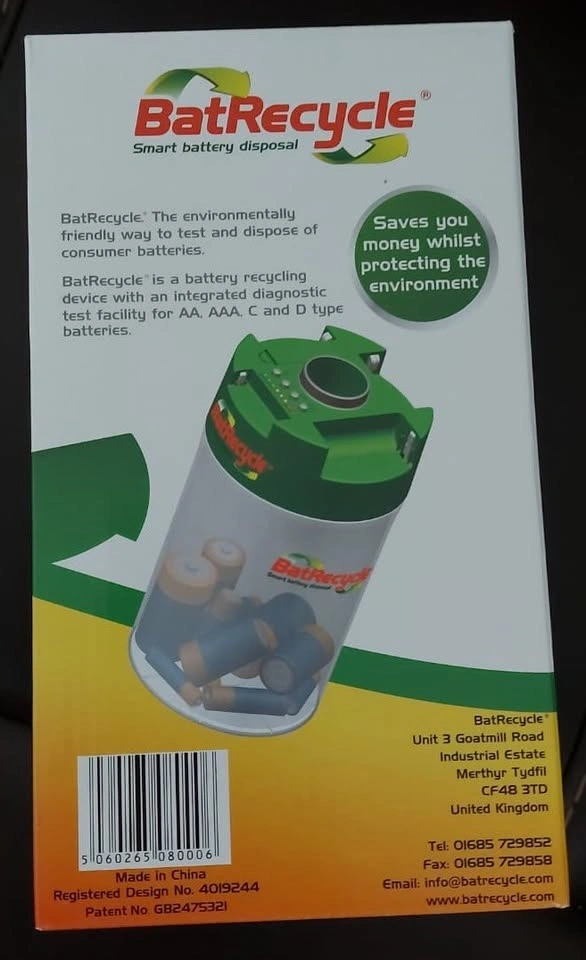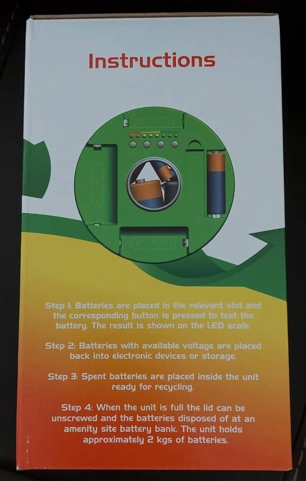 86Battery Recycle bin with built-in battery tester. Great for safely collecting used batteries and checking if they still work. Compact and easy to use. Good condition.
