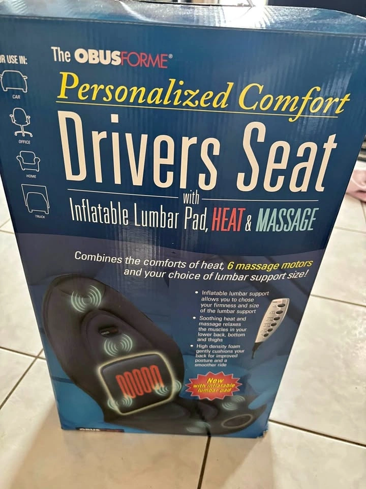 Personalized comfort with inflatable lumbar pad, heat and massage. This appears to be brand new, still in its original box with contents wrapped. It was definitely not used. This retails for over $100.