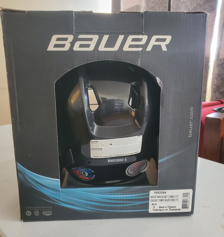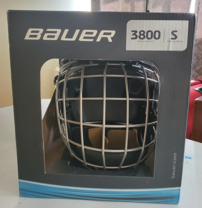 0Selling a Bauer 3800 certified hockey helmet combo in size small. It comes in the original box. This helmet is perfect for anyone looking for reliable protection on the ice!