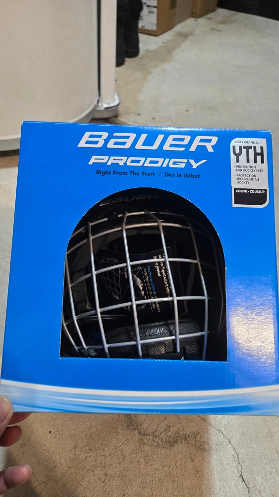 62Selling a brand new Bauer Prodigy youth hockey helmet, still in its original box! This helmet is designed to provide excellent protection for young players and features tool-less adjustment for a quick and easy fit. It also has a dual-density foam liner for added comfort and protection. Perfect for getting your little one safely on the ice!
