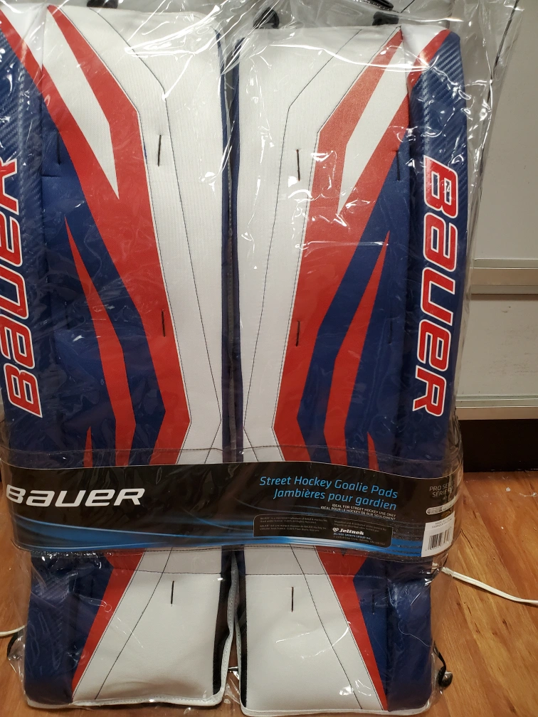 Brand new Bauer Street Hockey Goalie Pads, still in the original packaging! Perfect for some street hockey fun. These pads are designed for ideal for street hockey.