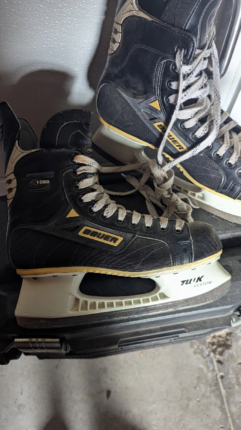 10Selling a pair of Bauer Supreme 1000 ice hockey skates. They show some signs of use but are still in good shape for hitting the ice. Perfect for recreational skating, size 9