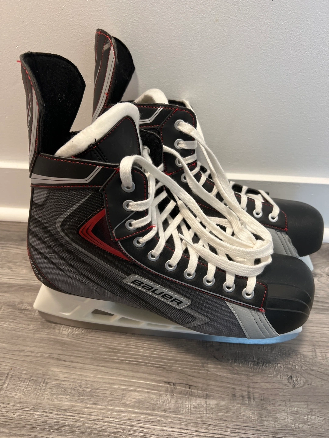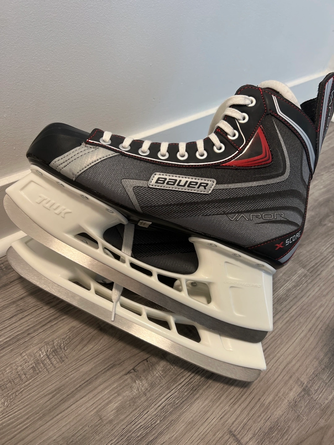 1000+Bauer Vapor X-Score ice hockey skates. Senior size. Grey, black, and red accents. Like new condition. Includes laces. Used once