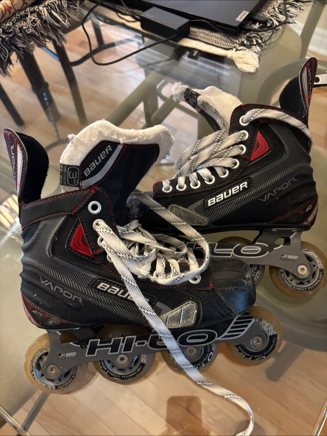15Selling a pair of Bauer Vapor X400 inline skates. They are black and red. The size is 3R.