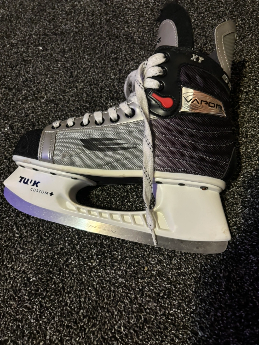 Brand New Bauer Vapor XT hockey skates. Black and silver colour scheme. Tuuk Custom Plus blades. Size 11