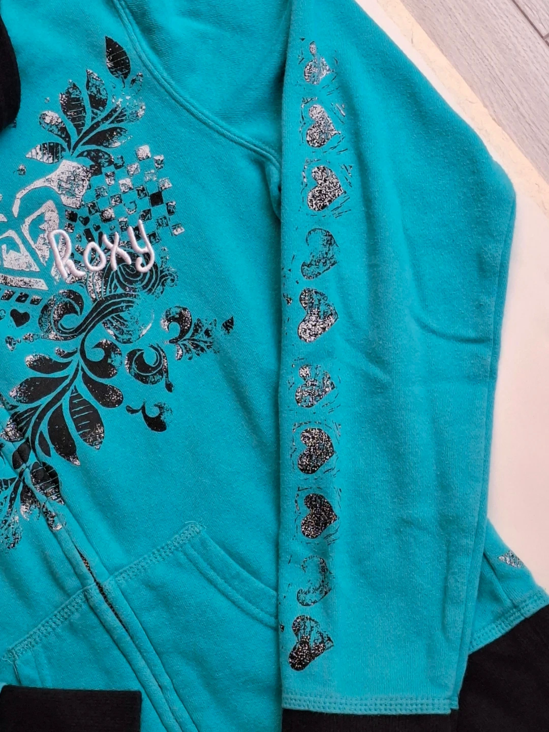 🥕Roxy Teal and Black Graphic Zip-Up Hoodie