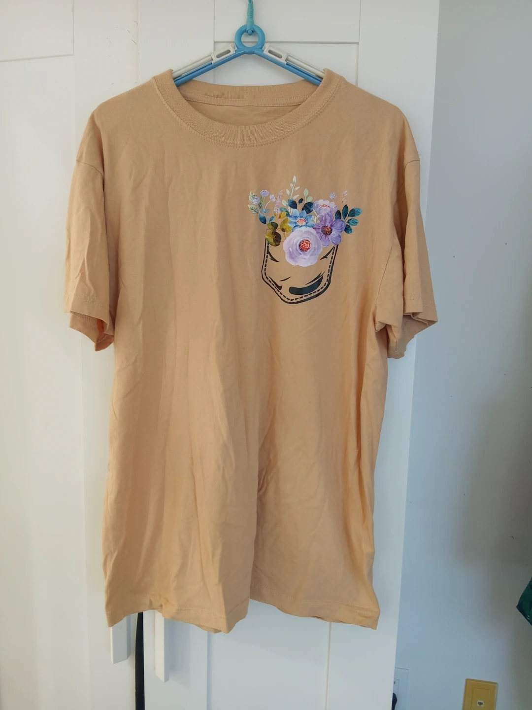 Lightweight and comfortable short sleeve t-shirt. Features a printed pocket design with colourful floral accents. Perfect for casual wear, this tee offers a relaxed fit and soft feel.