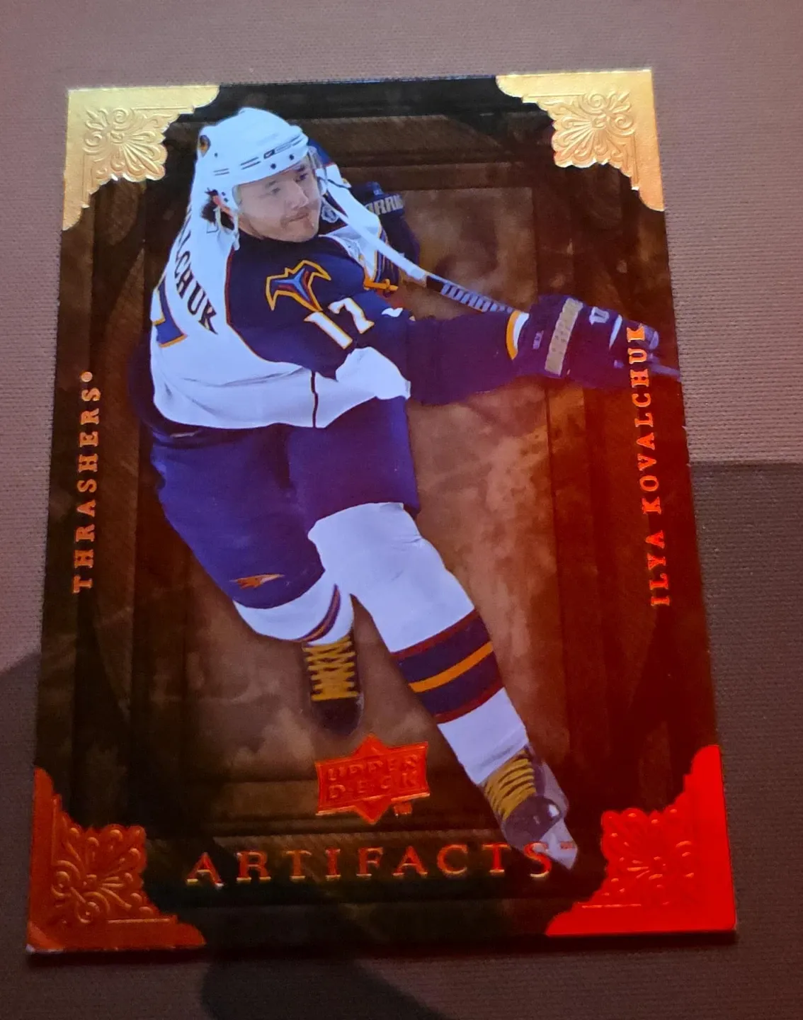 This is a 2005-06 Upper Deck Artifacts hockey card featuring Ilya Kovalchuk. It's part of the Thrashers set. A great card for any collector!