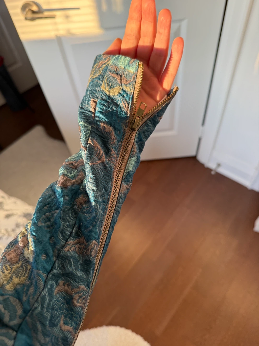 One of a kind gorgeous teal brocade jacket from Bebe. Bought it in a vintage store in Paris 🇫🇷🫶🏼