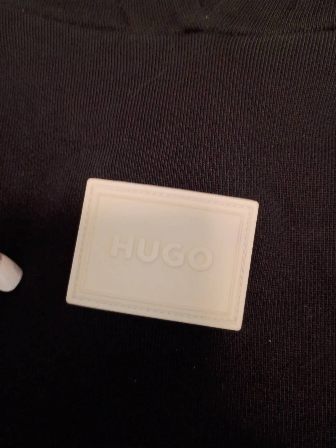 A classic black Hugo Boss hoodie. It's made from a comfortable cotton blend. This hoodie is great for casual wear.