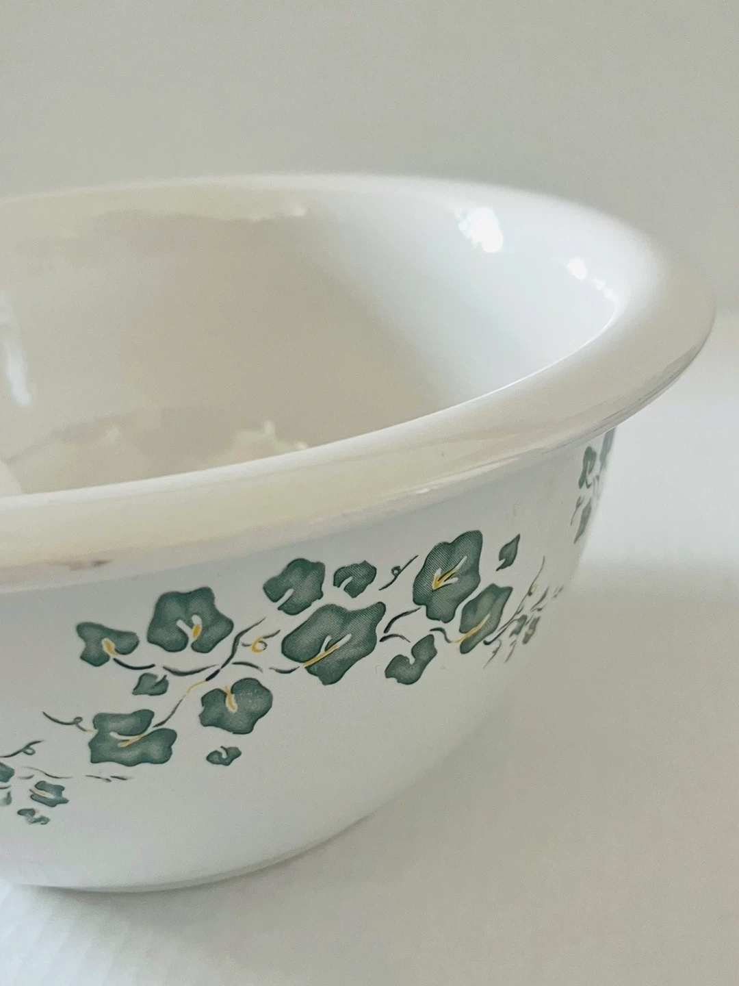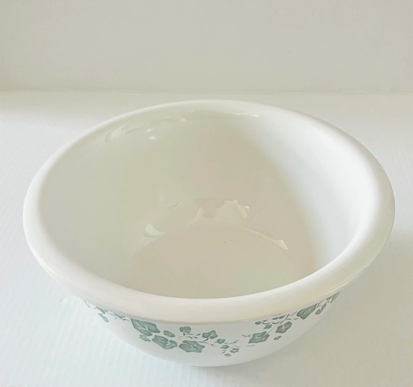 Ceramic Mixing Bowl – White with Green Floral Pattern