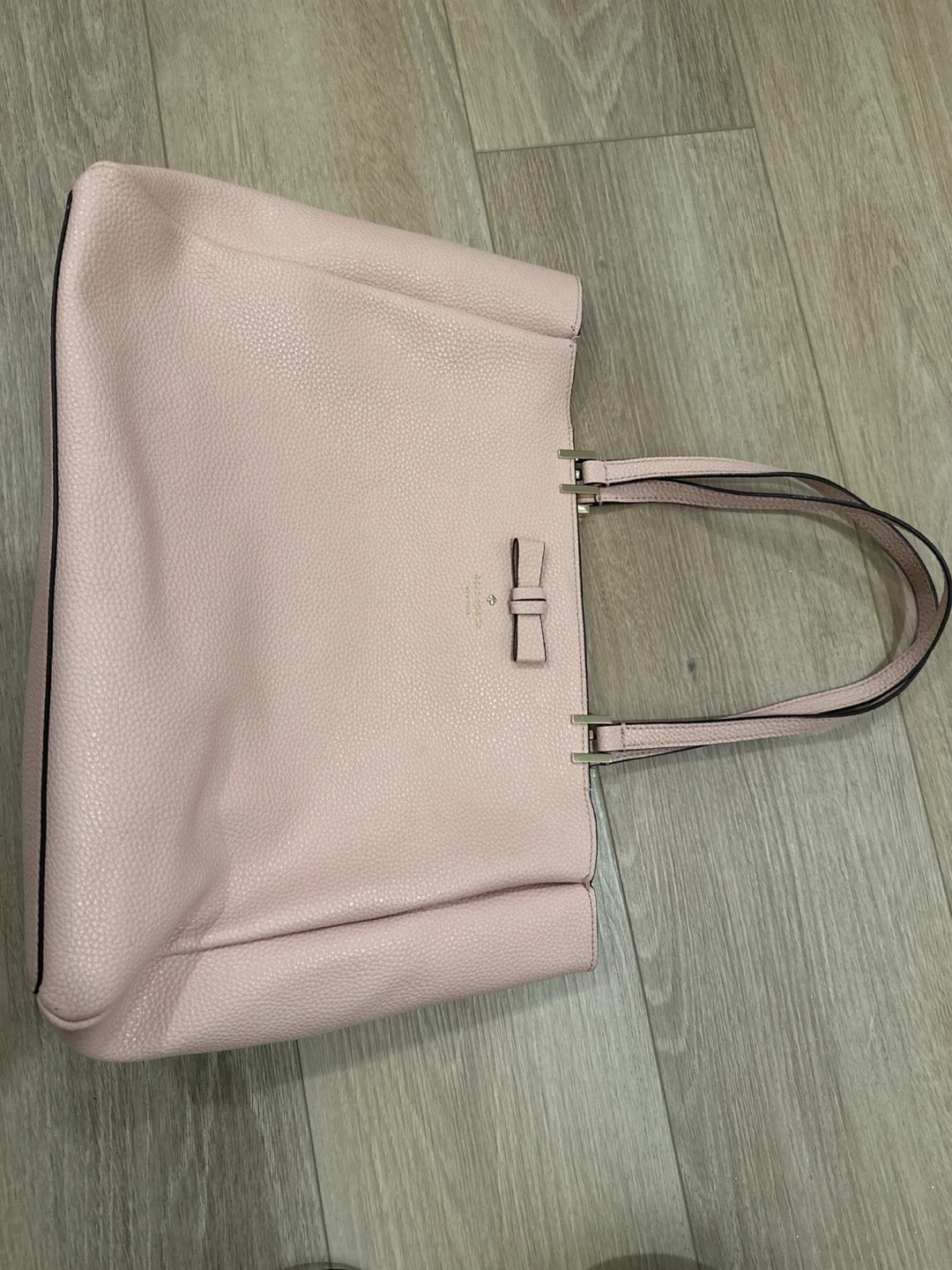 This is a lovely pink pebbled leather tote bag from Kate Spade. It features a cute bow accent on the front and a spacious interior with pockets. Perfect for carrying your everyday essentials!